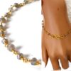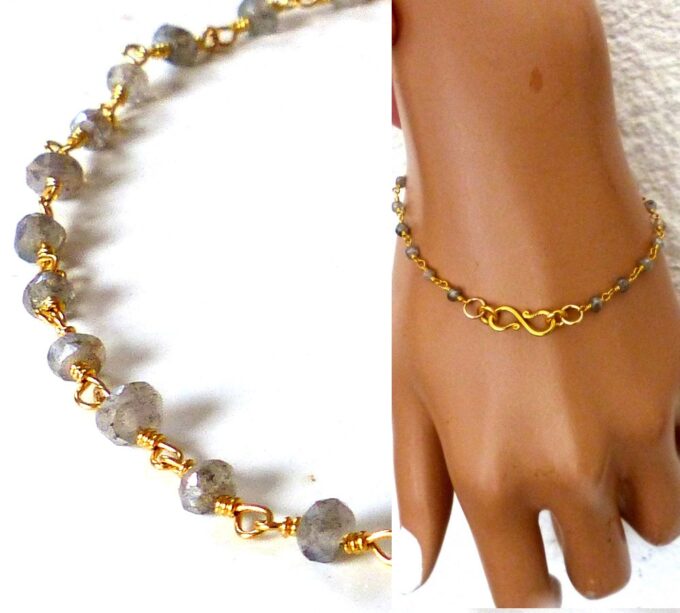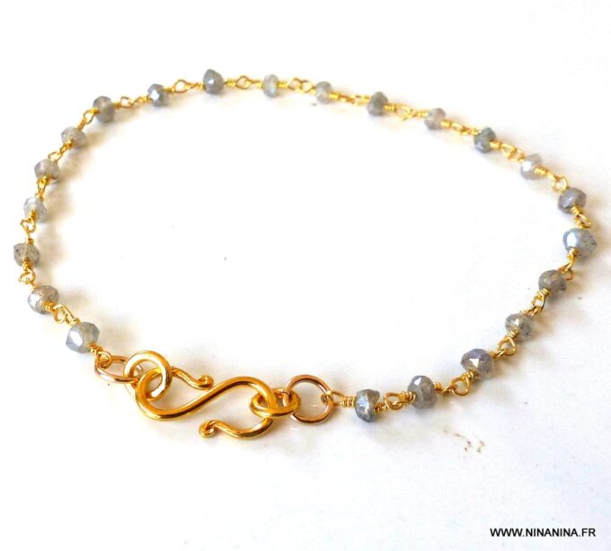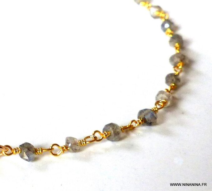 Bracelet infini femme or plaqué et Argent 925 massif composée de petites Labradorites brutes montées sur fil plaqué or.