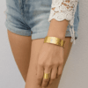 Essentiel dans une boîte à bijoux, ce bracelet doré en laiton au volume imposant est une pièce de caractère parfaite pour compléter une tenue, sans l’alourdir ni la dénaturer. Le bracelet manchette femme se porte sur le poignet, en été et sur peau bronzée. Ajustable, il s’ajustera parfaitement sur votre bras. Un bijou très tendance qui apportera originalité et exotisme à vos tenues.
