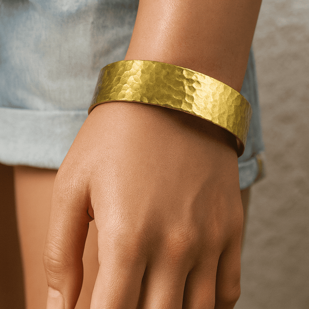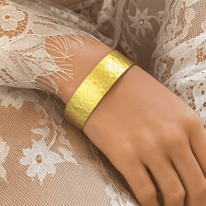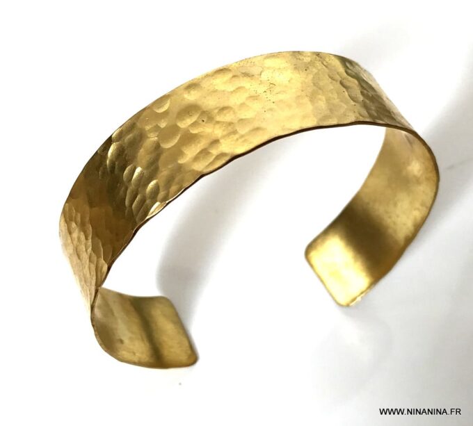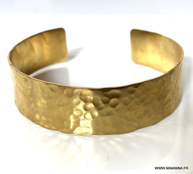 Découvrez ce Bracelet laiton femme doré – Manchette or martelé qui habillera joliment votre poignet! A fois design, contemporain, raffiné et sophistiqué, ce bracelet s’adaptera en douceur et en finesse à votre poignet. Sa forme douce et son style voluptueux lui confère une rare élégance. Raffiné et confortable, il est certain que vous tomberez sous le charme de ce splendide bijou en laiton.