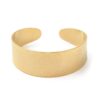 Ce bracelet manchette en Acier inoxydable doré de grande qualité convient pour la plupart des poignets d’homme ou de femme. Très léger et facile à porter, Il possède un diamètre de 5,7 cm qui peut-être légèrement ajustée en écartant ou ressérant le bracelet. La largeur du bracelet manchette est de 2,2 cm. Poids : 56 g. Disponible également en acier inoxydable argenté.