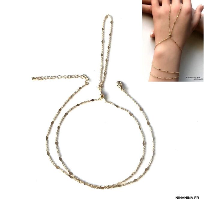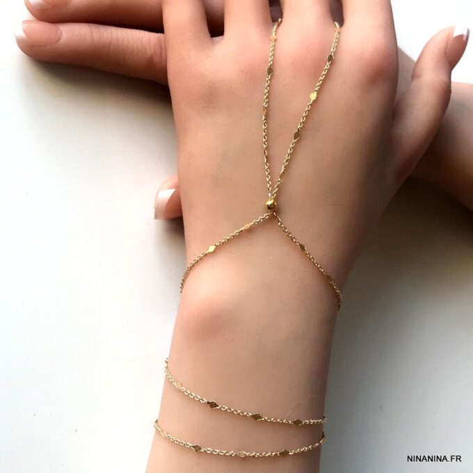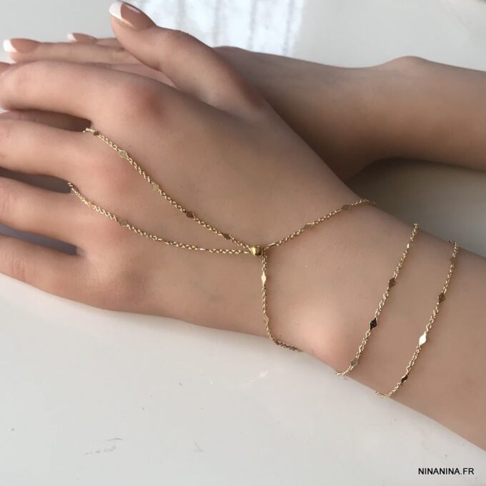 Si vous aimez les Chaines de main originales, Ce bracelet de main ne vous deçevra pas! Portez ce joli Bijou de main tendance seul pour un look minimaliste ou mixé à d’autres Bracelets Ninanina.
