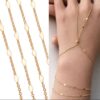 Découvrez sans plus tarder ce splendide Bracelet main doigt or plaqué chaine fantaisie losange qui s’adaptera à toutes vos tenues, des plus décontractées aux plus habillées.  Avec ses petits losanges dorés délicatement répartis sur une fine chaînette en maille fantaisie qui s’enfile autour d’un doigt, court le long de votre main et enlace votre poignet, ce bijou de main est à la fois féminin et raffiné ! Il est terminé par un fermoir mousqueton, sûr et facile d’utilisation et d’une chainette de réglage.