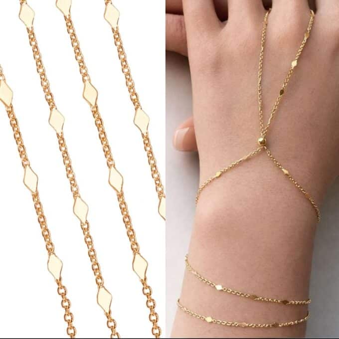 Soyez le premier à laisser votre avis sur “Bracelet main doigt or en laiton doré artisanal – chaine fantaisie losange 3 tours”