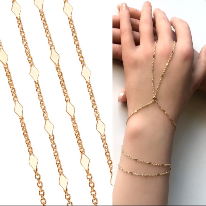 Découvrez sans plus tarder ce splendide Bracelet main doigt or plaqué chaine fantaisie losange qui s’adaptera à toutes vos tenues, des plus décontractées aux plus habillées. Avec ses petits losanges dorés délicatement répartis sur une fine chaînette en maille fantaisie qui s’enfile autour d’un doigt, court le long de votre main et enlace votre poignet, ce bijou de main est à la fois féminin et raffiné ! Il est terminé par un fermoir mousqueton, sûr et facile d’utilisation et d’une chainette de réglage.