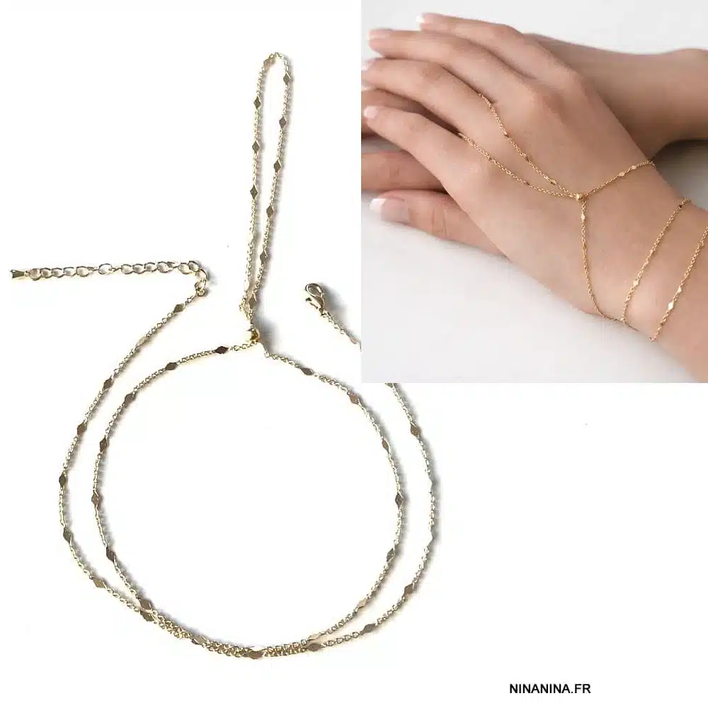 Ce bijou de main s’enfile à un doigt, descend le long de la main et s’attache autour du poignet en faisant 3 tours. Contrairement aux bagues, ce bracelet doré n’a pas de signification particulière. Néanmoins, il est nécessaire de choisir le bon emplacement afin de rester dans le confort. Vous êtes gauchère ? Il est préférable de porter le bijou sur votre main droite. Ainsi, il sera plus facile de l’attacher et de manipuler son fermoir. Vous n’aurez pas non plus de gêne dans l’accomplissement de vos tâches quotidiennes.