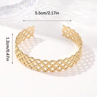 Ce bracelet large est ouvert à une extrémité, ce qui permet de l’ajuster facilement au poignet. Sa conception simple mais sophistiquée le rend polyvalent pour divers styles de mode. Il se joue des genres, autant masculin que féminin, et sa prestance lui ouvre la porte de tous les styles.