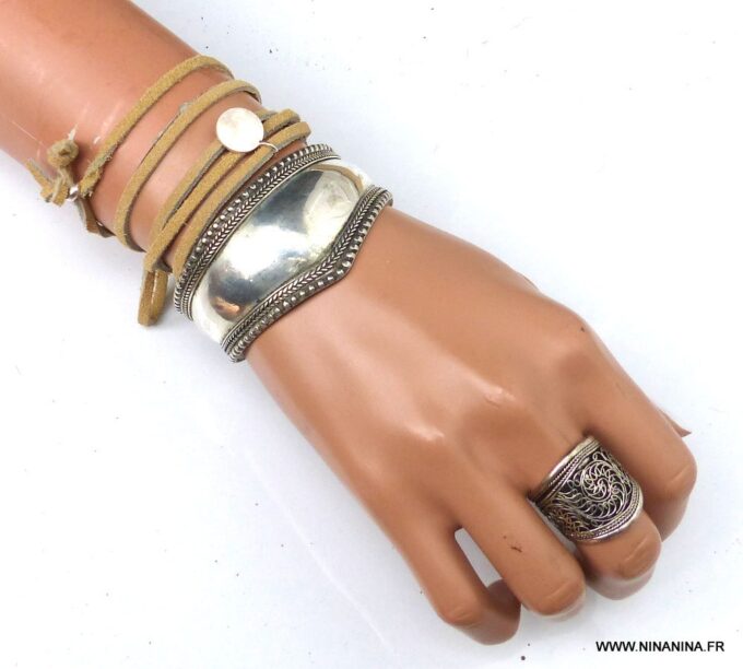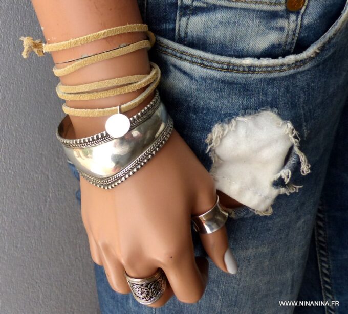 Bracelet wrap cordon daim Argent 925 massif