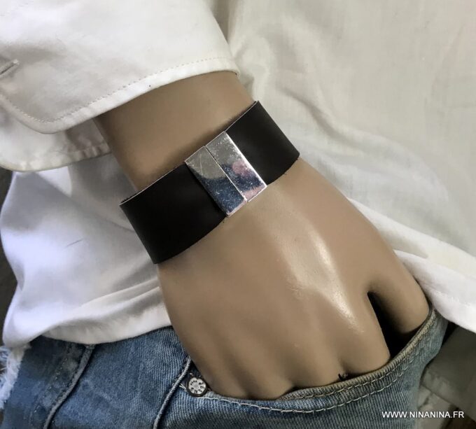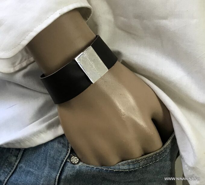 Bracelet manchette cuir femme ou homme fermoir aimanté