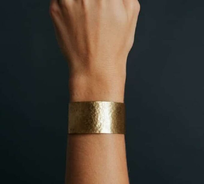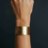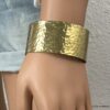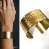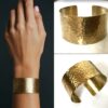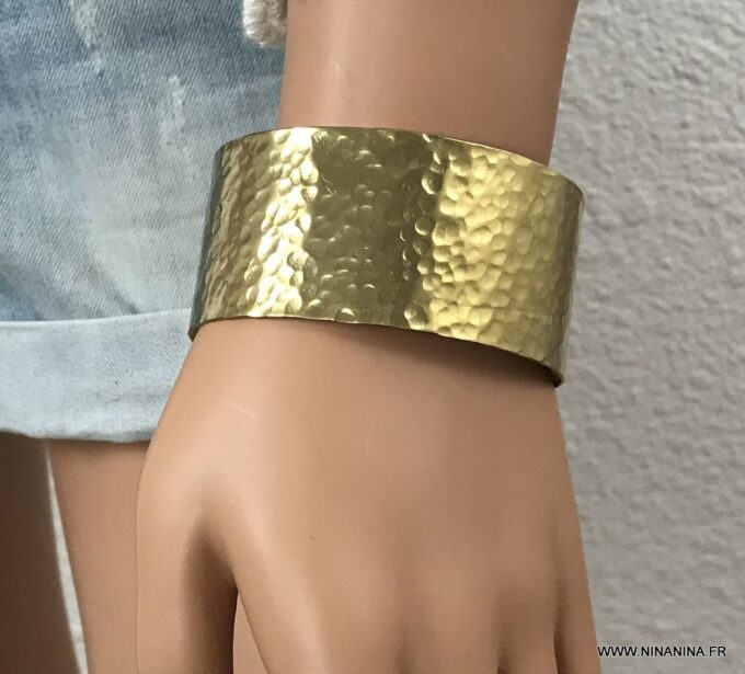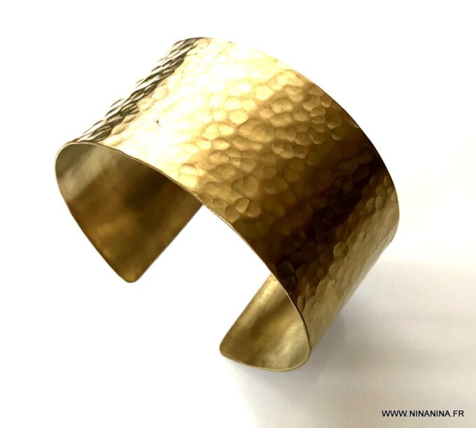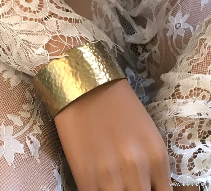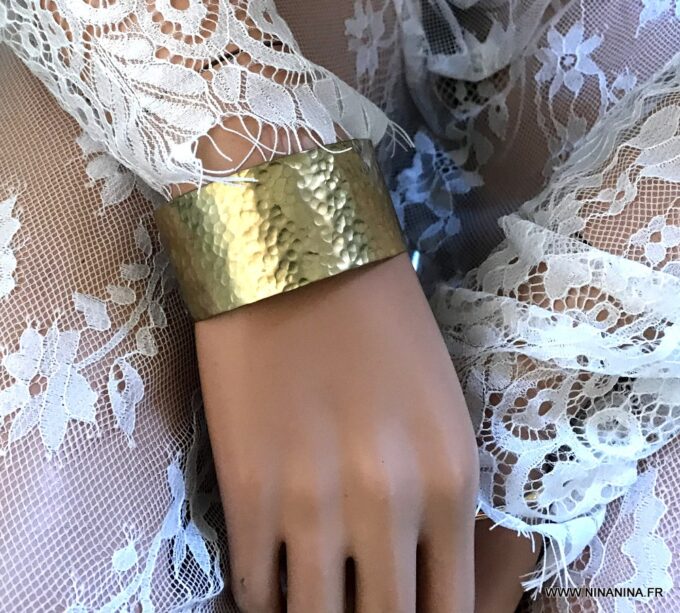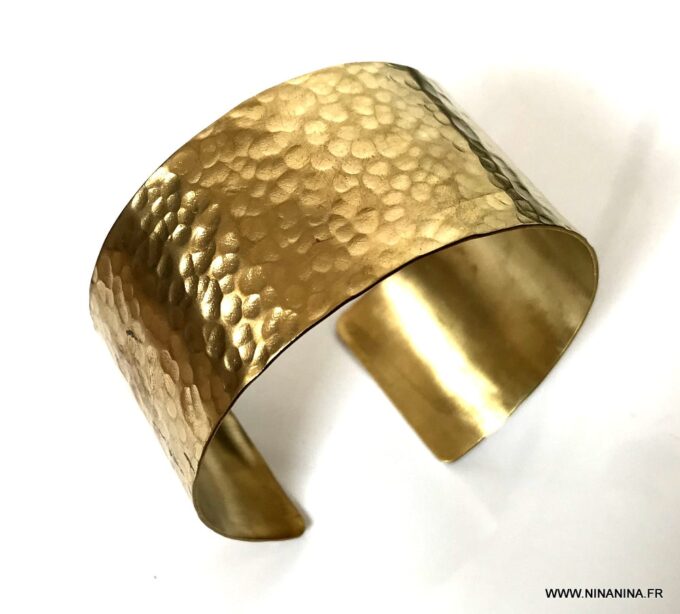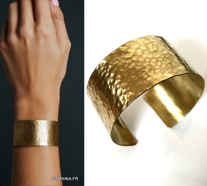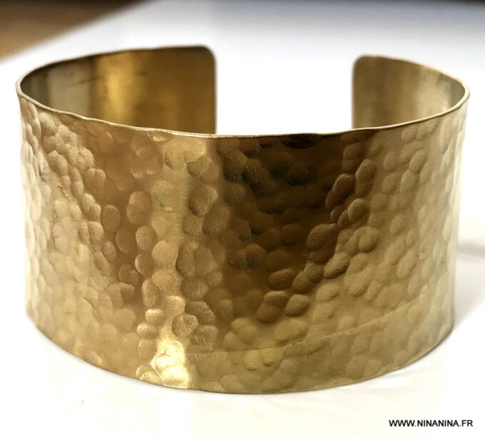 Optez pour ce Bracelet manchette laiton doré martelé pour femme qui habillera joliment votre poignet! A fois design, contemporain, raffiné et sophistiqué, ce bracelet s’adaptera en douceur et en finesse à votre poignet. Sa forme douce et son style voluptueux lui confère une rare élégance. Raffiné et confortable, il est certain que vous tomberez sous le charme de ce splendide bijou en laiton.