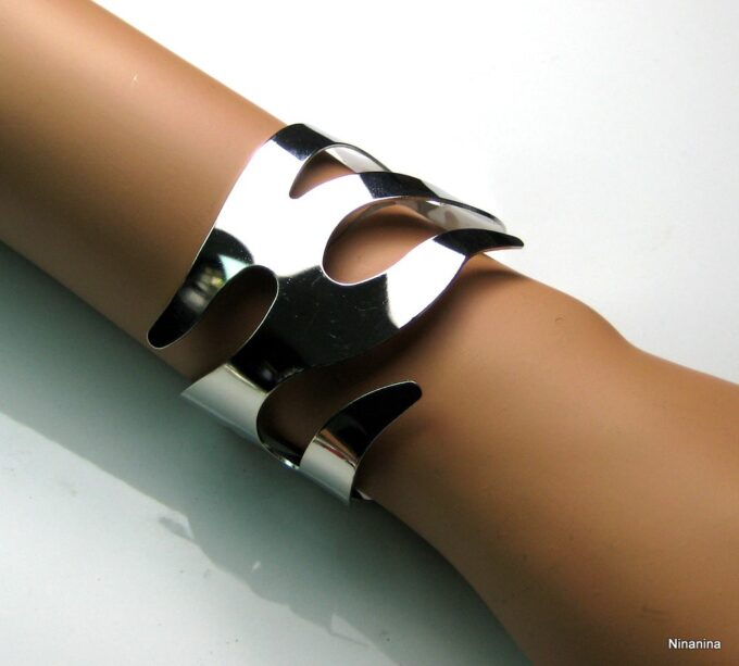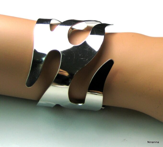 Largeur : 4,5 cm. Diamètre : 6 cm réglable. Livré dans sa pochette d’organza.