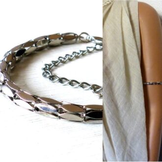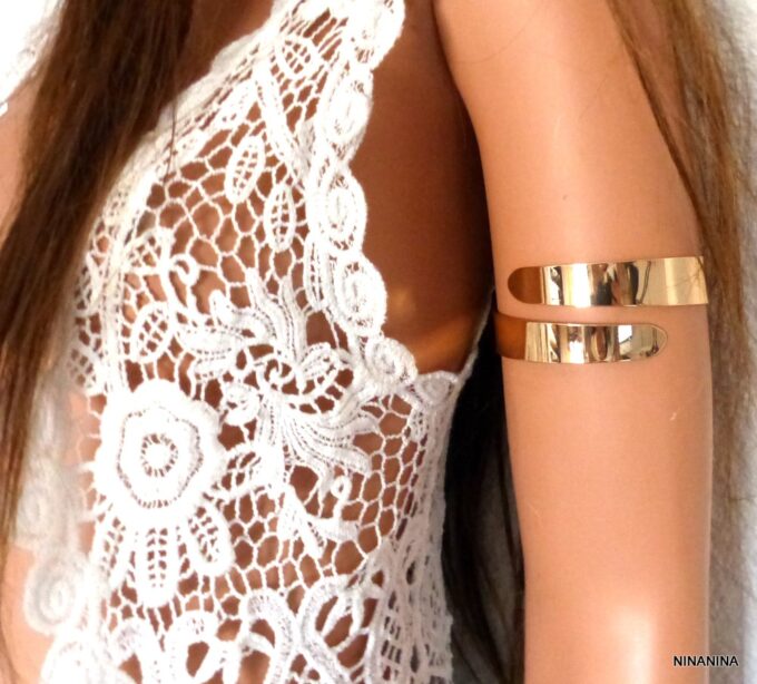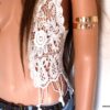 Au même titre qu’un collier femme ou qu’une paire de boucles d’oreilles, un bracelet doit correspondre parfaitement à sa propre personnalité. Le bracelet de bras, de style tribal bohème se porte au dessus du coude, en été et sur peau bronzée. Disponible en métal argenté ou doré, ce Bracelet de bras ethnique s’ajustera parfaitement sur votre biceps et restera en position par la pression exercée sur le bras. Ce bijou très tendance apportera originalité et exotisme à vos tenues. Porté avec un petit débardeur et une jupe longue, l’effet hippie chic est assuré!