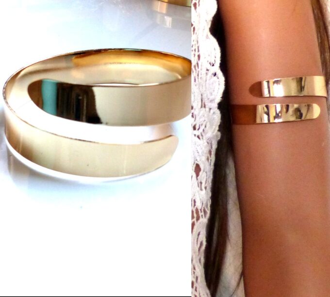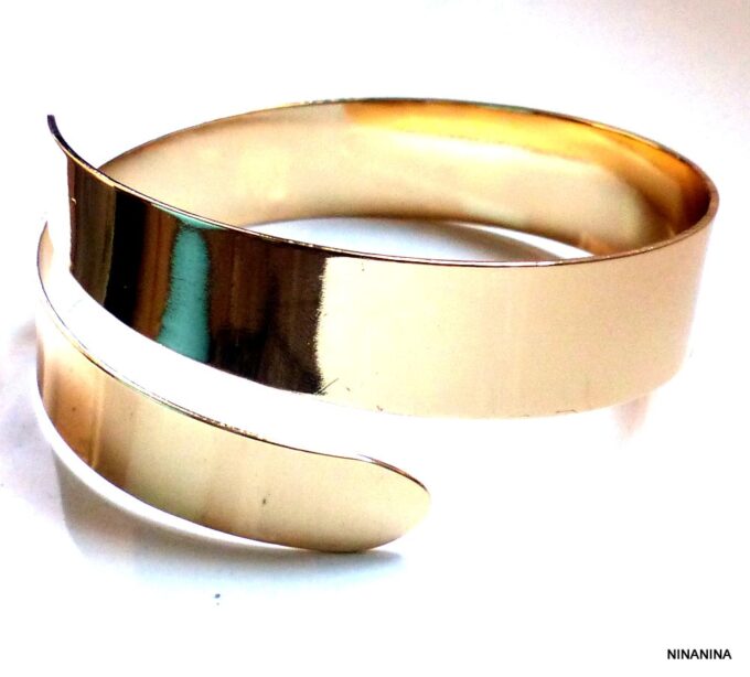 Très à la mode depuis quelques années, le Bracelet de biceps, aussi appelé Bracelet de bras ou bijou de bras ou encore brassard, est toujours en vogue dans le milieu de la mode alternative. C’est le bijou ethnique qui a le plus de succès cette saison ! A fois large et discret, ce Bracelet de bras ethnique homme ou femme métal doré est le mélange d’une forme manchette ethnique traditionnel et d’un bijou chic très raffiné. Ses courbes parfaites en spirale, son confort au biceps et sa beauté rare habilleront en un clin d’œil le haut de votre joli bras. Proposé en édition limitée, ce bracelet ethnique de charme vous séduira par son caractère et sa personnalité. Un bijou ethnique de grande qualité que vous garderez longtemps assurément! Diamètre : 8 cm réglable. Largeur : 4 cm. Existe aussi en métal argenté.