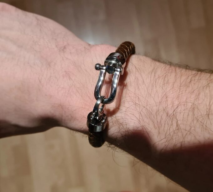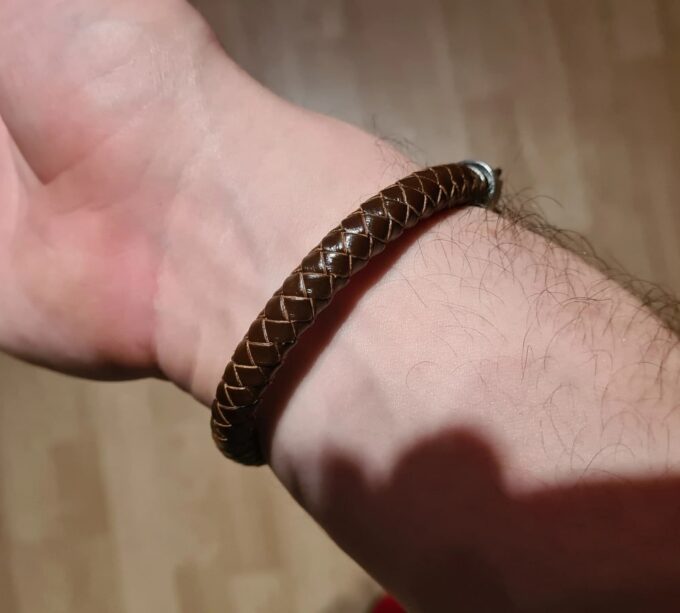 Le matériau utilisé pour la fabrication de ce bracelet homme cuir tressé est de l’acier inoxydable de type 316L, aussi appelé acier chirurgical. L’acier 316L est un acier haut de gamme, idéal pour la fabrication de bijoux. Subtil alliage de plusieurs éléments (le fer, le nickel ou le chrome), l’Acier inoxydable est un matériau particulièrement prisé pour ses nombreuses vertus. Il est très solide et robuste, totalement hypoallergénique, ne rouille pas et, contrairement à l’Agent, ne s’oxyde pas. Sa résistance à l’eau et à la transpiration en font un métal idéal pour des Bijoux à porter tous les jours. Nul besoin donc de retirer son bracelet pour faire du sport ou un plongeon dans l’eau de mer ou encore prendre sa douche!