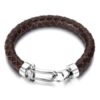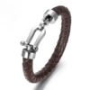 Ayez toujours un peu de mer, d’iode et d’embrun, toujours à portée de main avec ce Bracelet manille homme cordon cuir tressé fermoir acier composé d’un élégant fermoir manille en acier inoxydable argenté monté sur un cordon de cuir tressé noir (8 mm de diamètre).