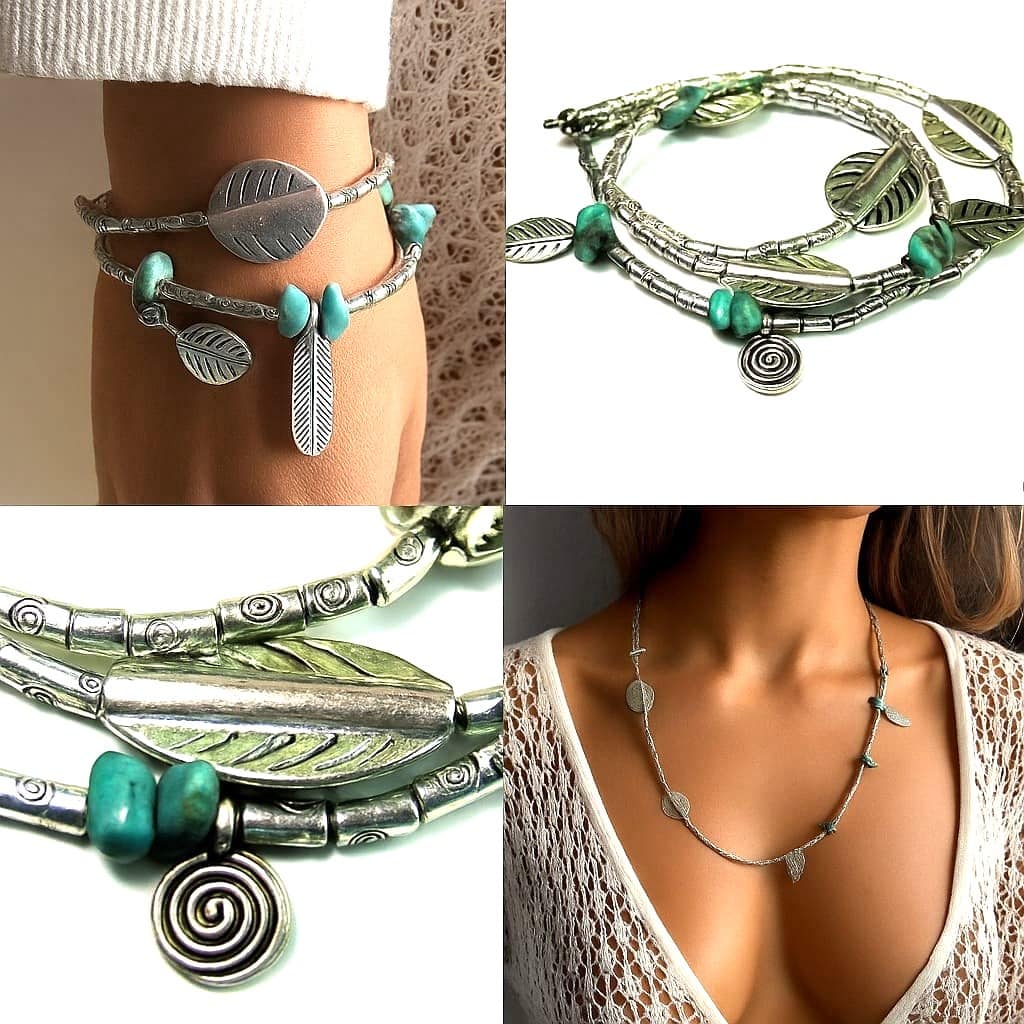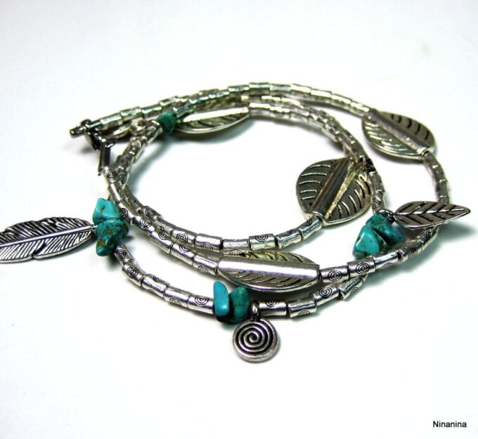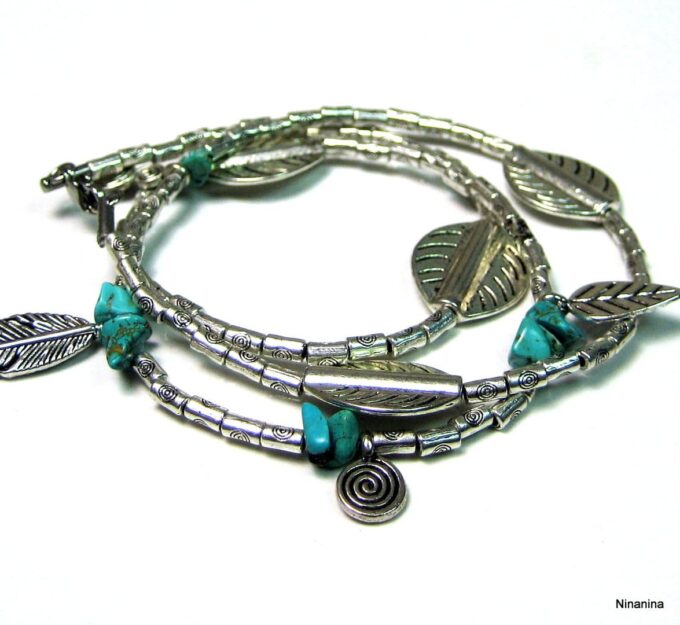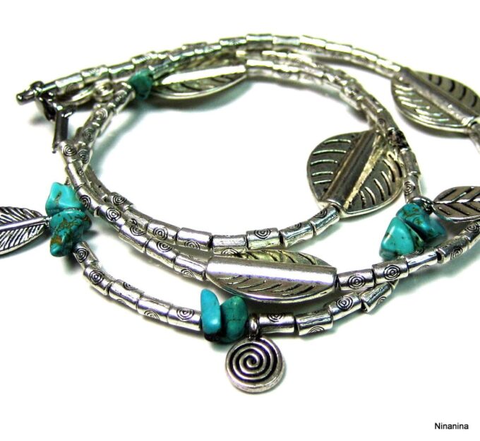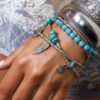 Bracelet bohème chic multi-tours : l’alliance du bleu turquoise et de l’argenté