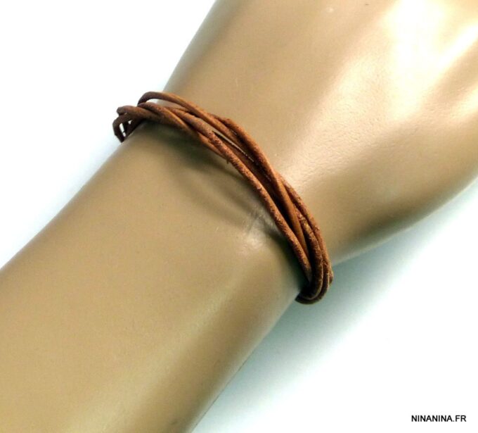 Bracelet plusieurs tours cordon cuir naturel réglable