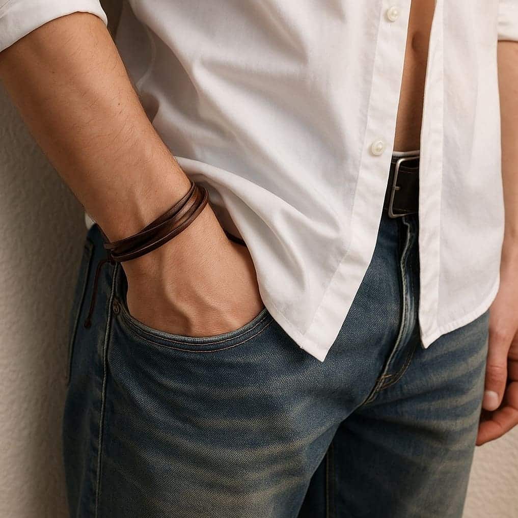 Bracelet Homme Multi Liens en Cuir Marron – Style Authentique & Ajustable