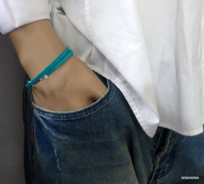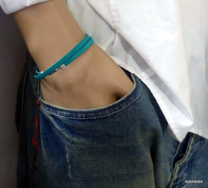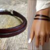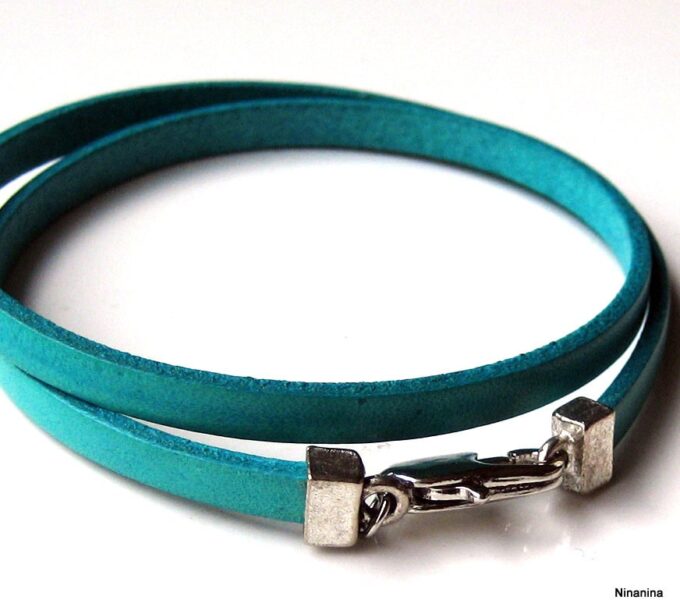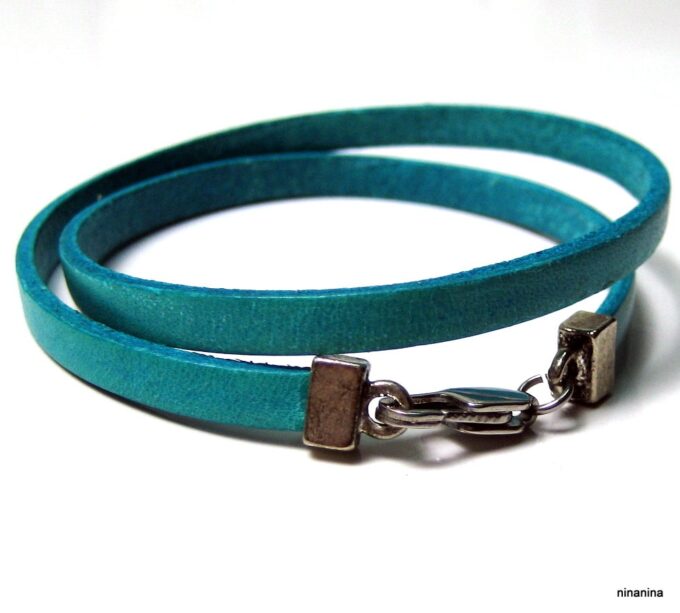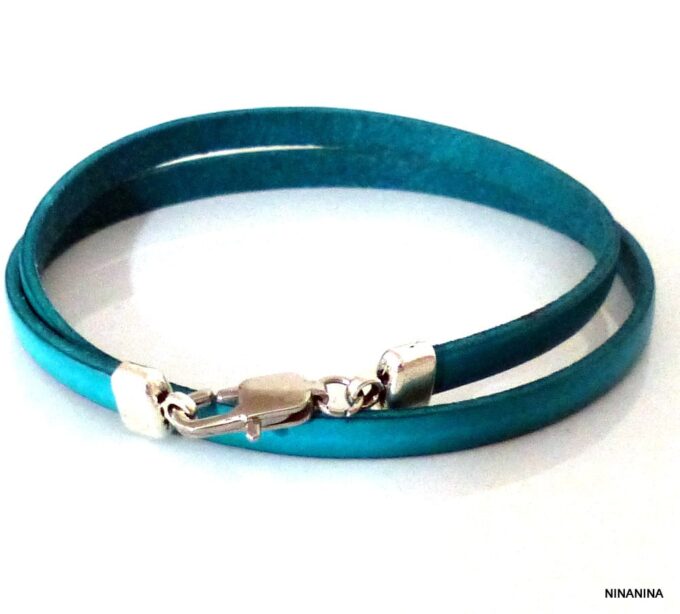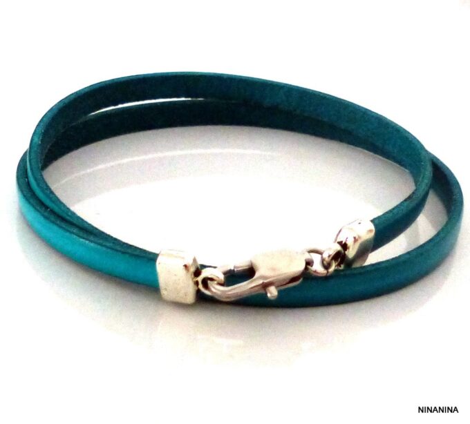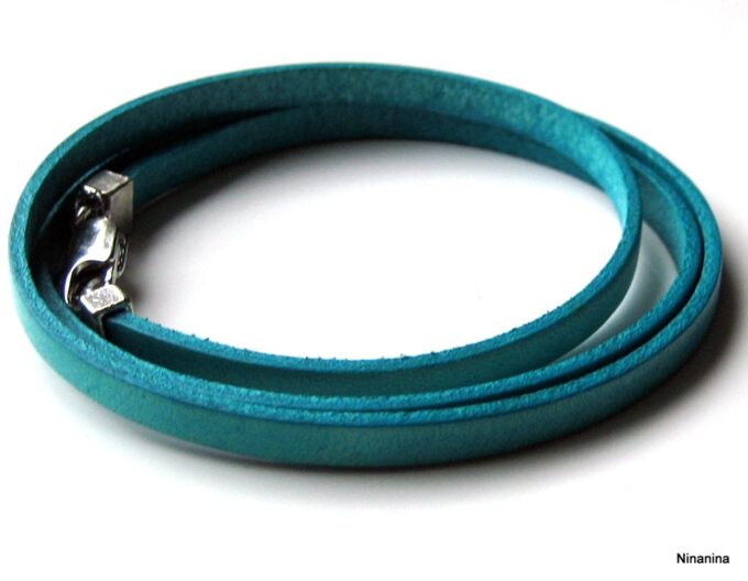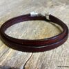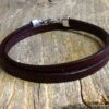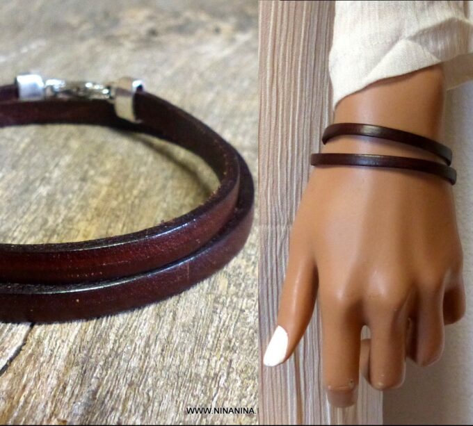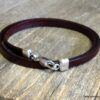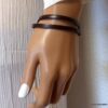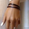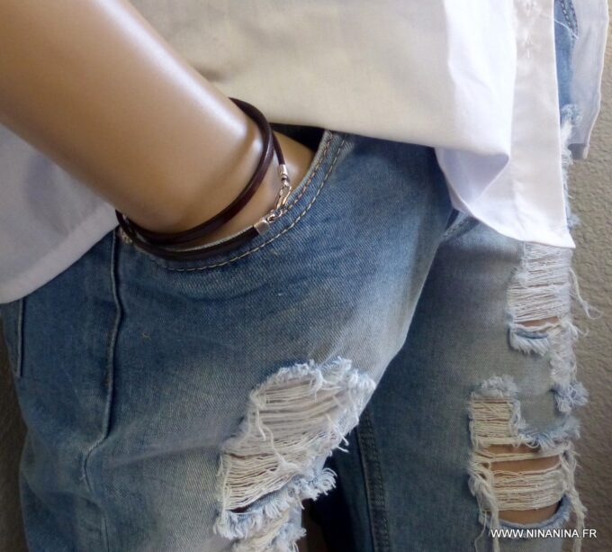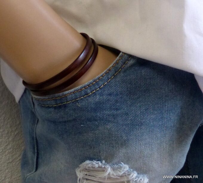 Bracelet homme femme wrap cuir 2 tours composé d’un bandeau de cuir marron chocolat à enrouler autour du poignet (2 tours) monté sur un fermoir en métal argenté.