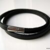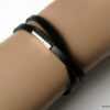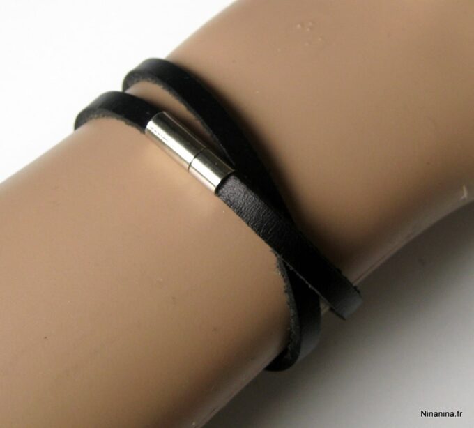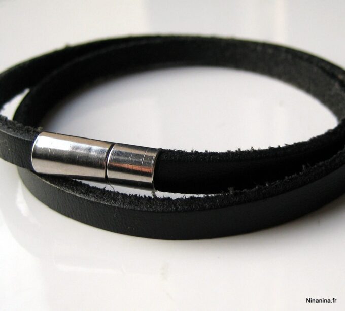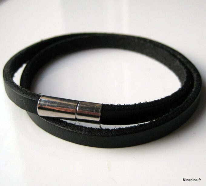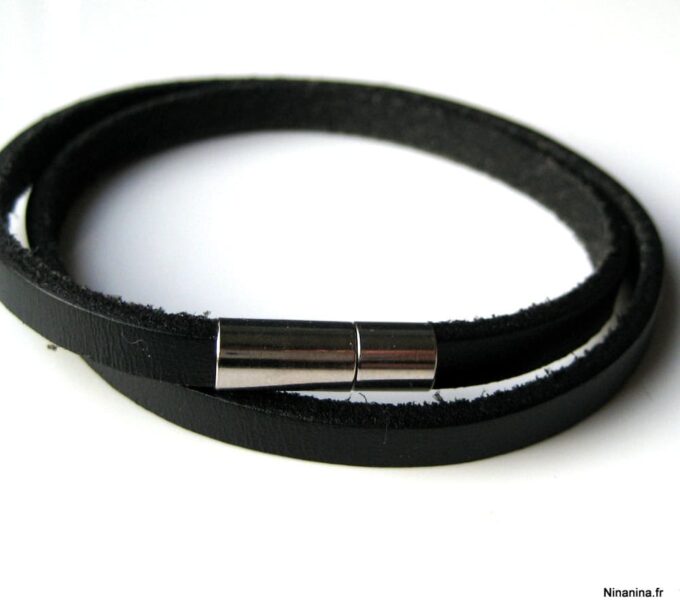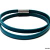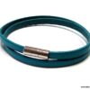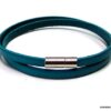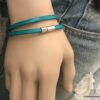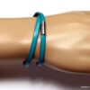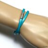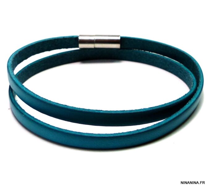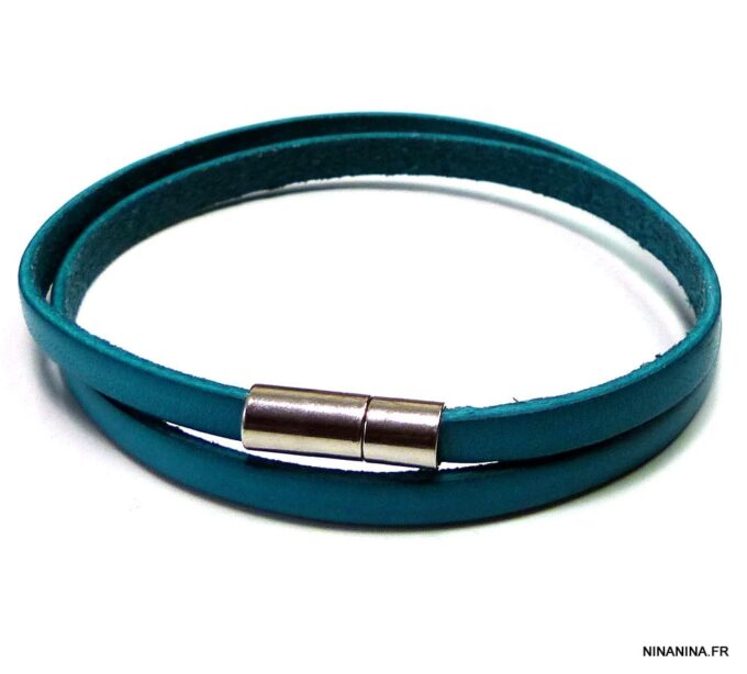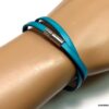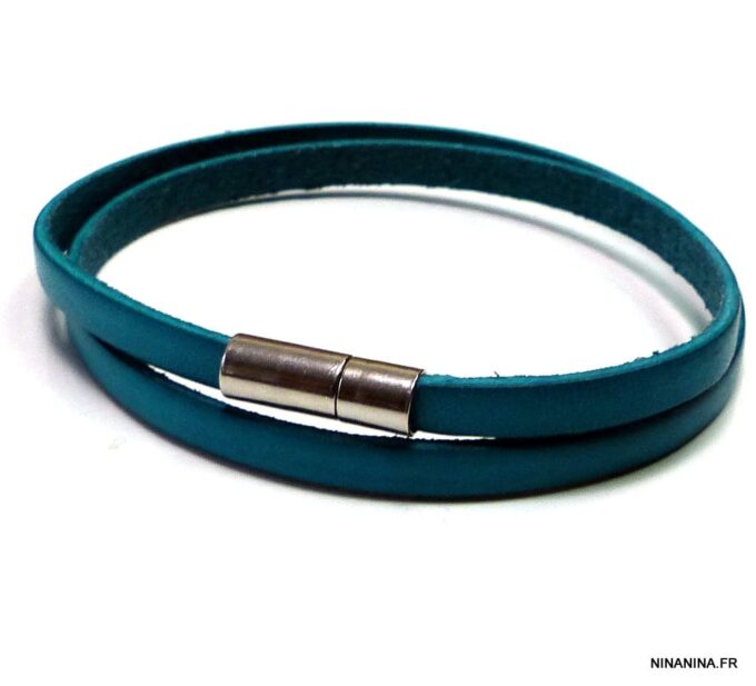 Bracelet cuir turquoise mixte et acier inoxydable argent composé d’un lacet de cuir turquoise (5 mm de large) à enrouler autour du poignet (2 tours).