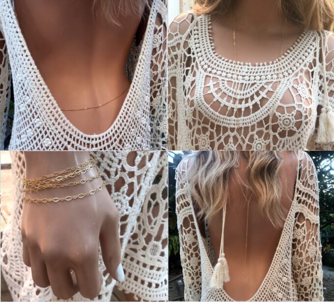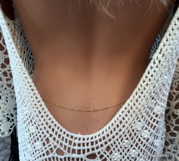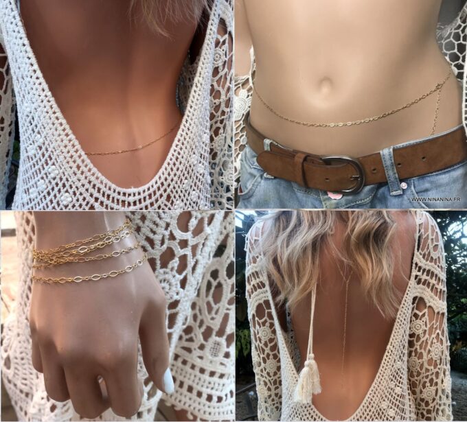 Astuce Ninanina : Portez ce magnifique bijou en collier sautoir ou en collier mi long en faisant deux tours ou encore en chaine de dos! Posé autour de votre taille, il deviendra une splendide chaine de taille sexy et raffinée. Un bijou aussi unique que vous l’êtes !