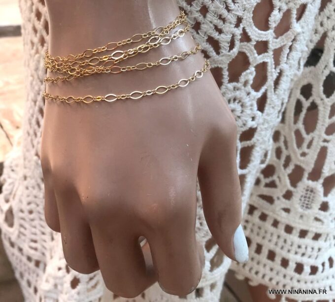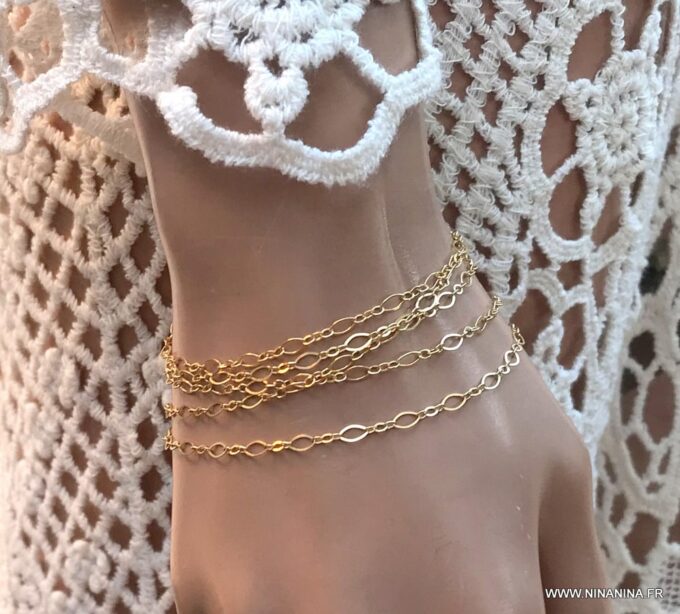 Découvrez ce magnifique Bracelet multi tour femme plaqué or maille fantaisie constitué d’une maille en Plaqué Or 14 carats gold filled, à enrouler autour du poignet.