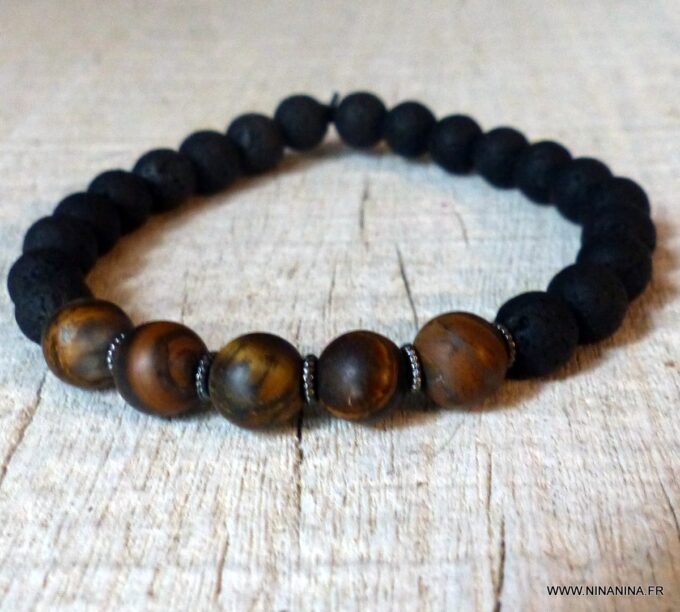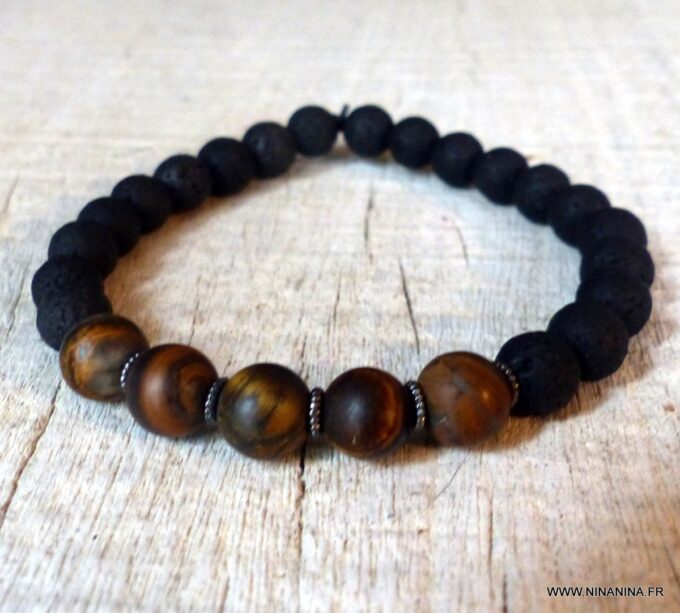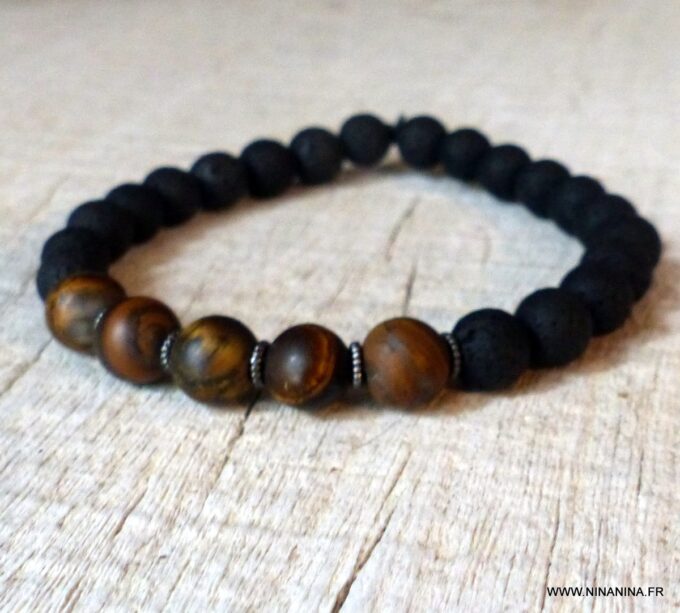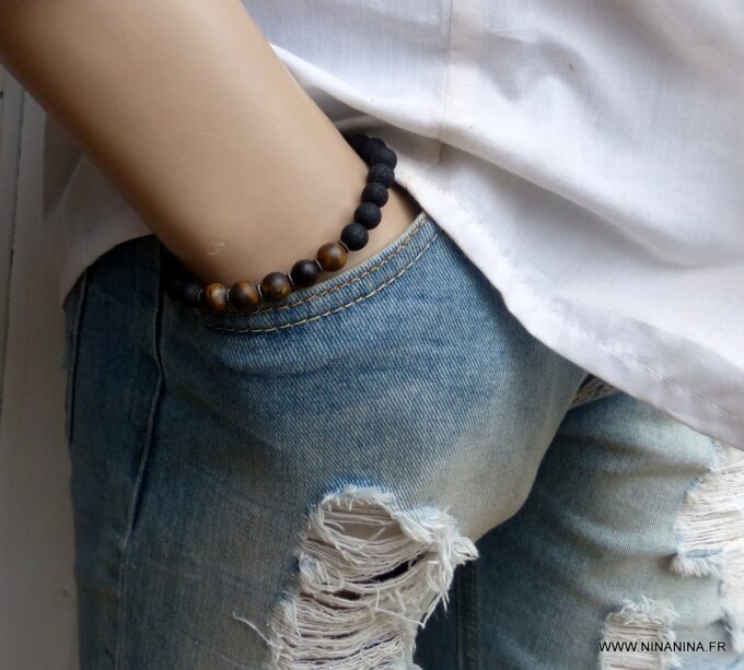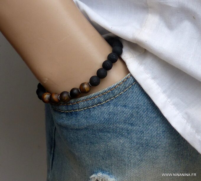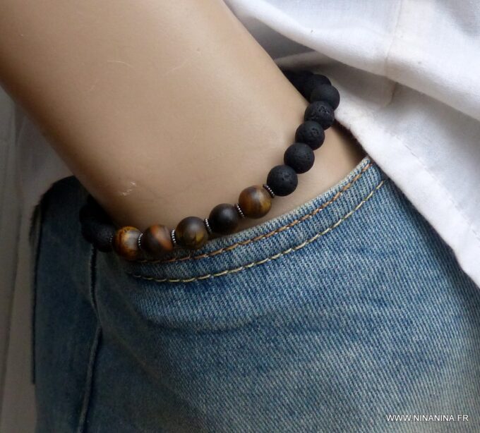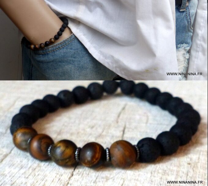 Un bracelet oeil de tigre et pierre de lave expédié en express