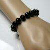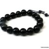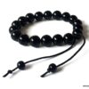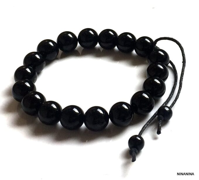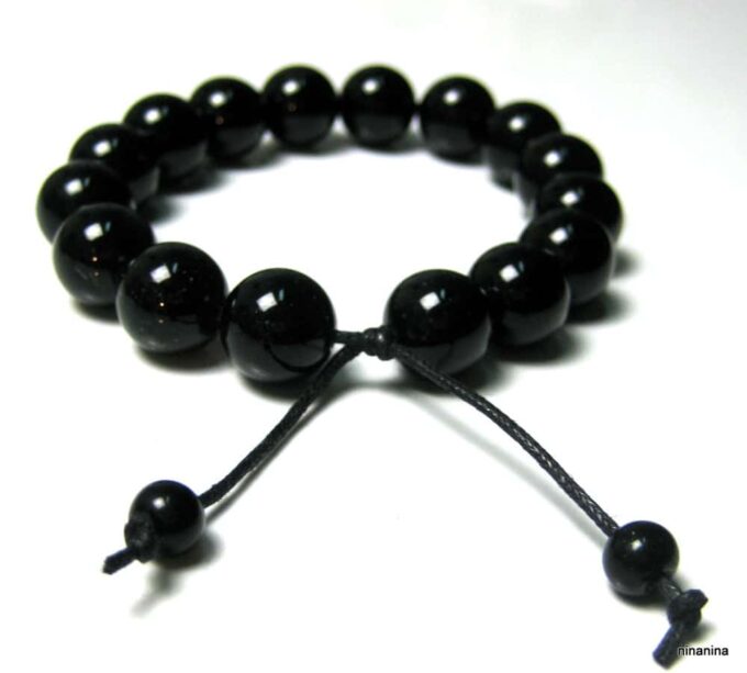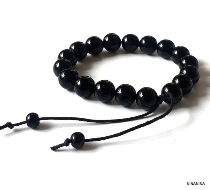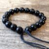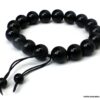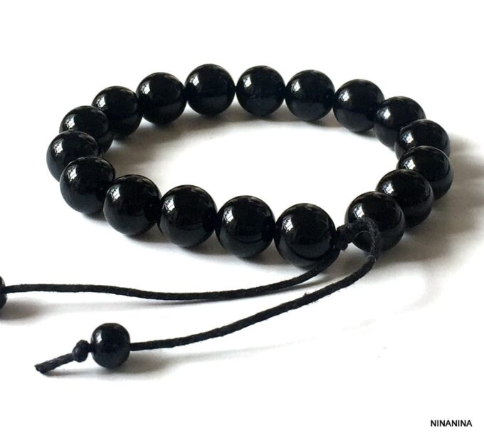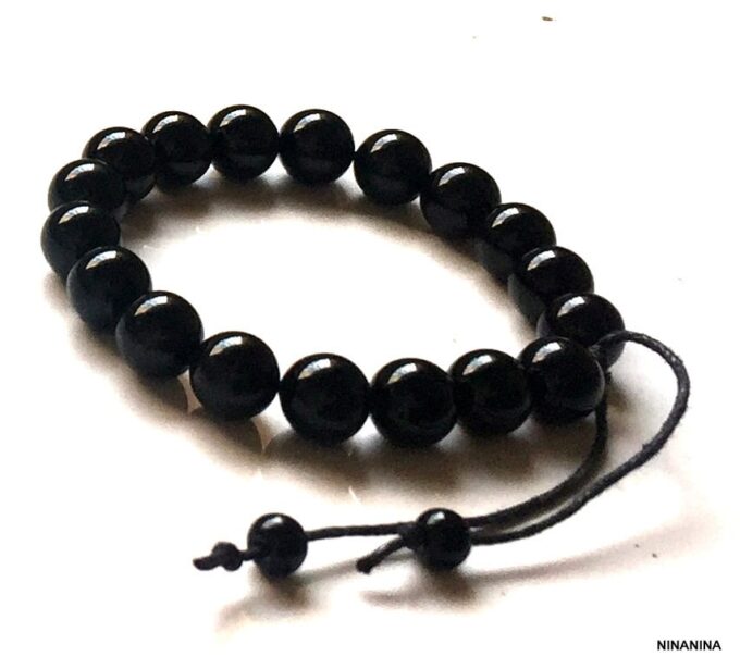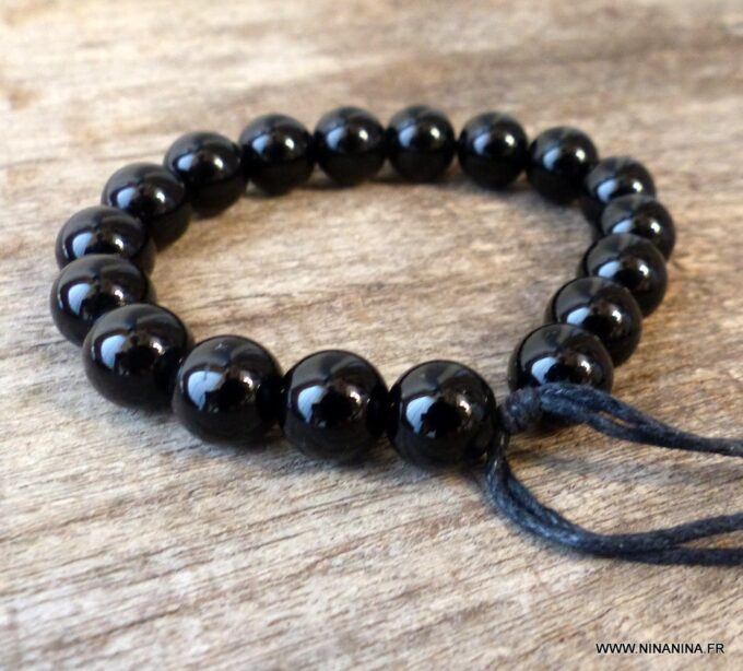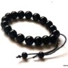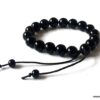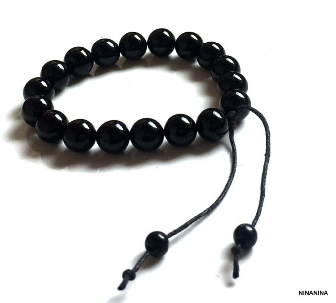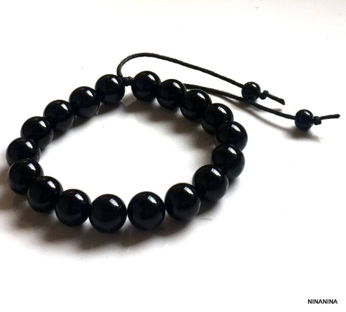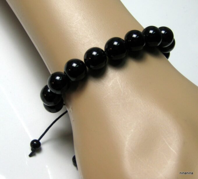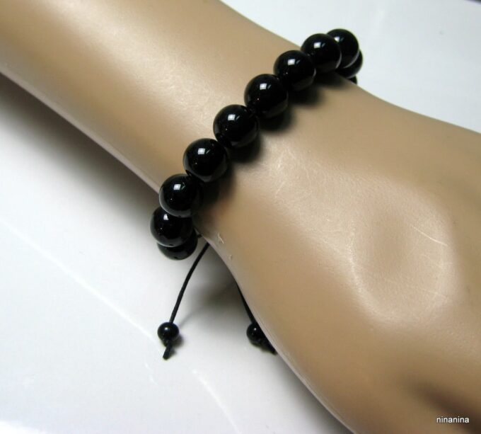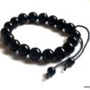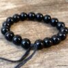 Bracelet homme réglable perles agates noires composé d’agates rondes noires montées sur un cordon de coton ciré noir (1mm de diamètre).