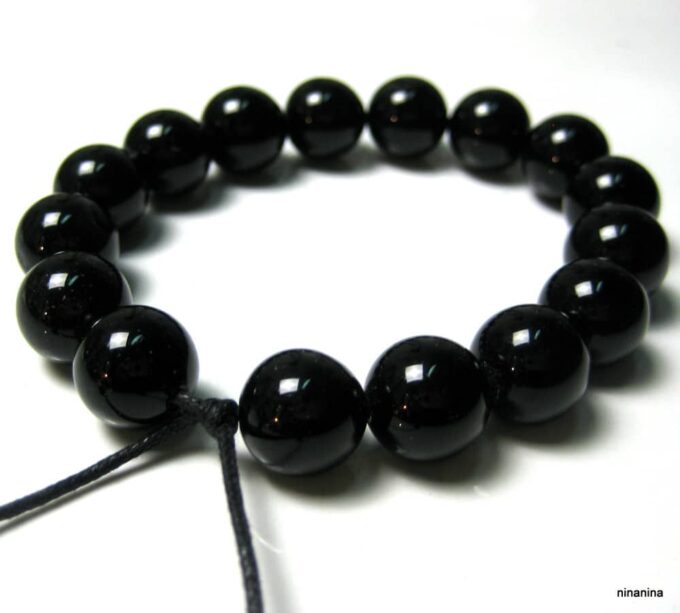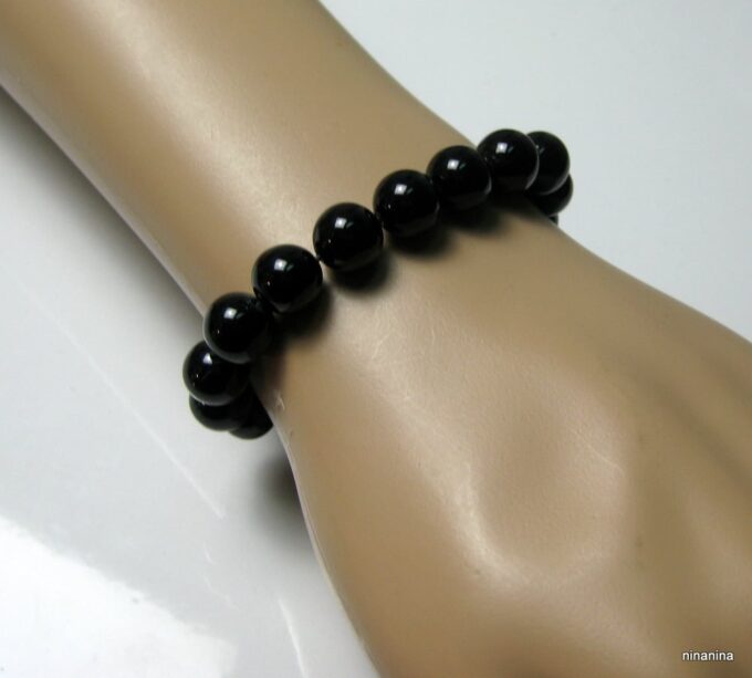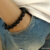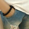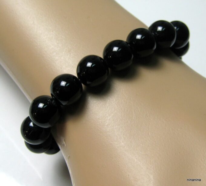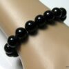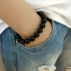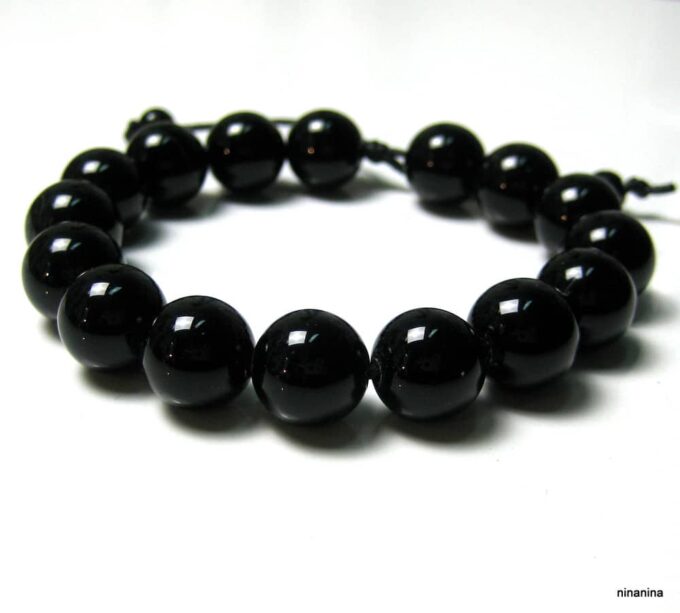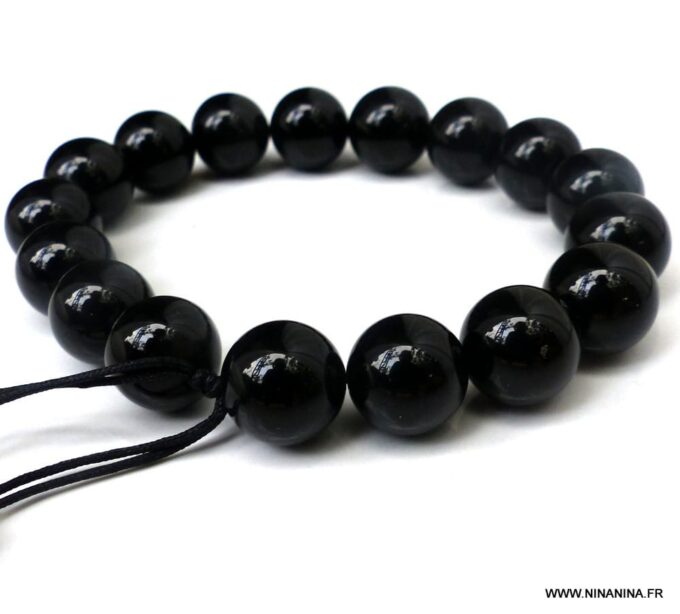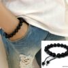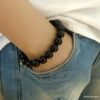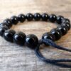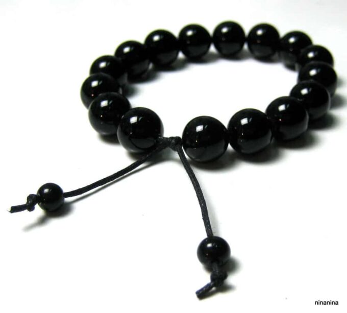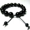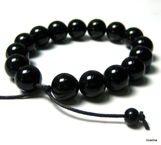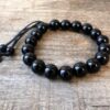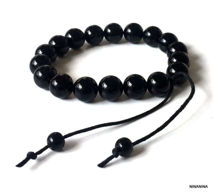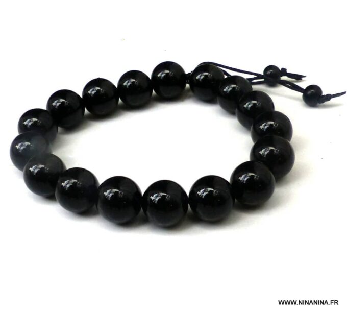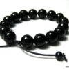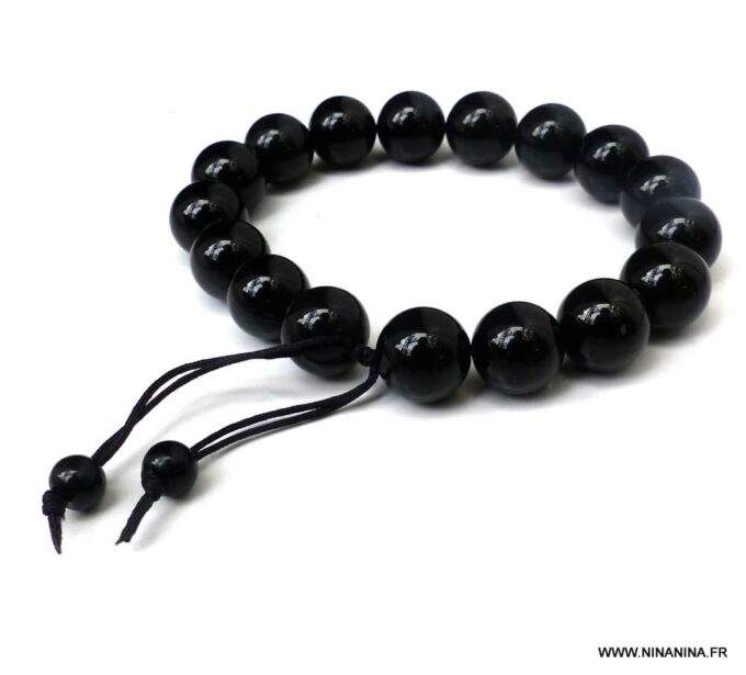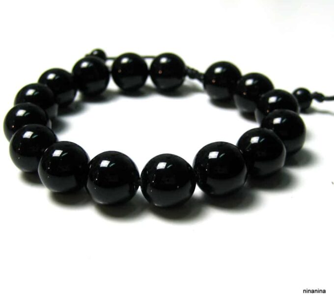 Bracelet homme réglable perles agates noires composé d’agates rondes noires montées sur un cordon de coton ciré noir (1mm de diamètre).