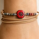 Bracelet cordon cuir noir perles cristal de bohème noires
