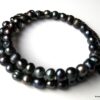 Bracelet perles d’eau douce grises composé de perles d’eau douce gris foncé montées sur un cable « mémoire » en métal argenté et terminées par une chainette double.