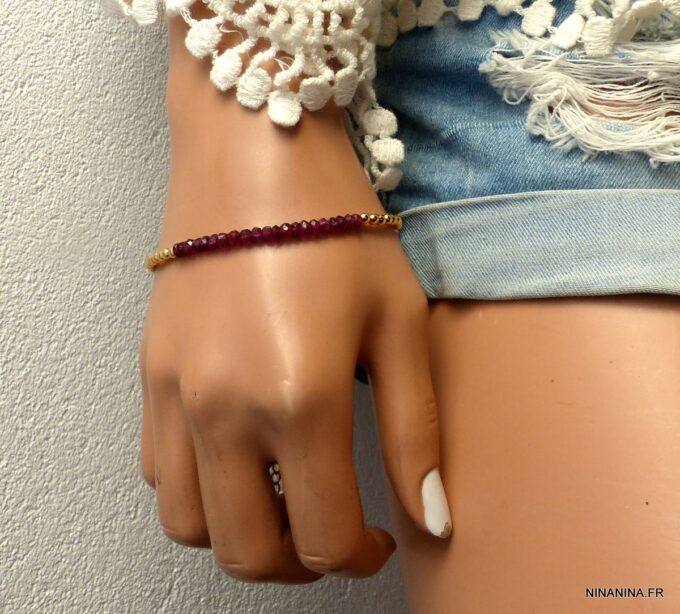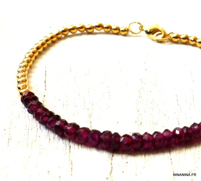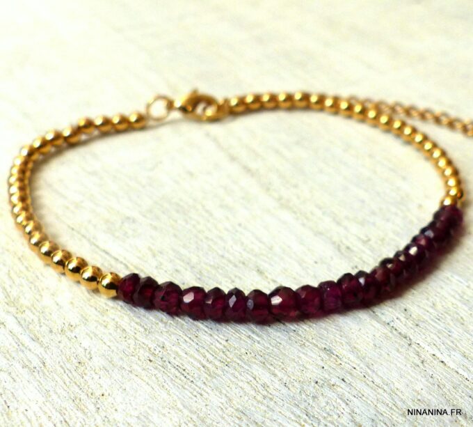 Idée cadeau Pierre de Naissance avec ce Bracelet Perles Plaqué Or Et Pierres Grenat constitué de perles rondes en Plaqué Or 18 carats et de Pierres en Grenat naturel. Ce Bracelet en Plaqué Or de haute qualité et de pierres de premier choix est unique et fabriqué à la main, de façon artisanale dans notre atelier en France. Il est terminé par un fermoir mousqueton et une chainette de rallongement.