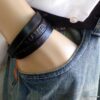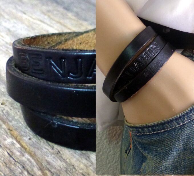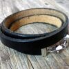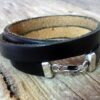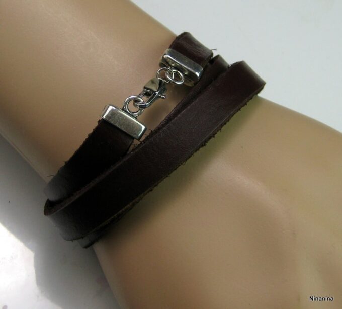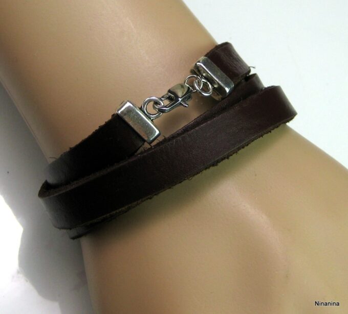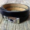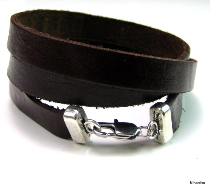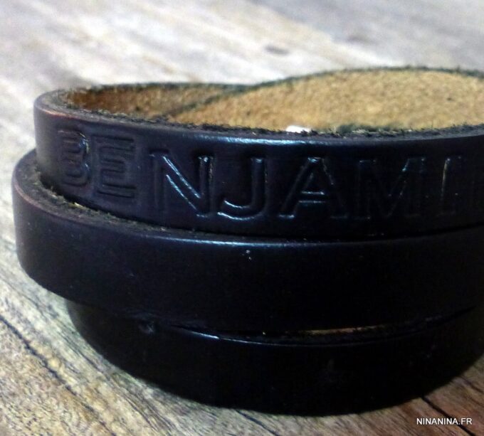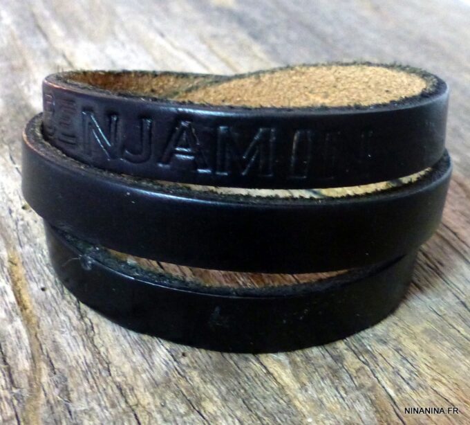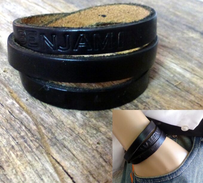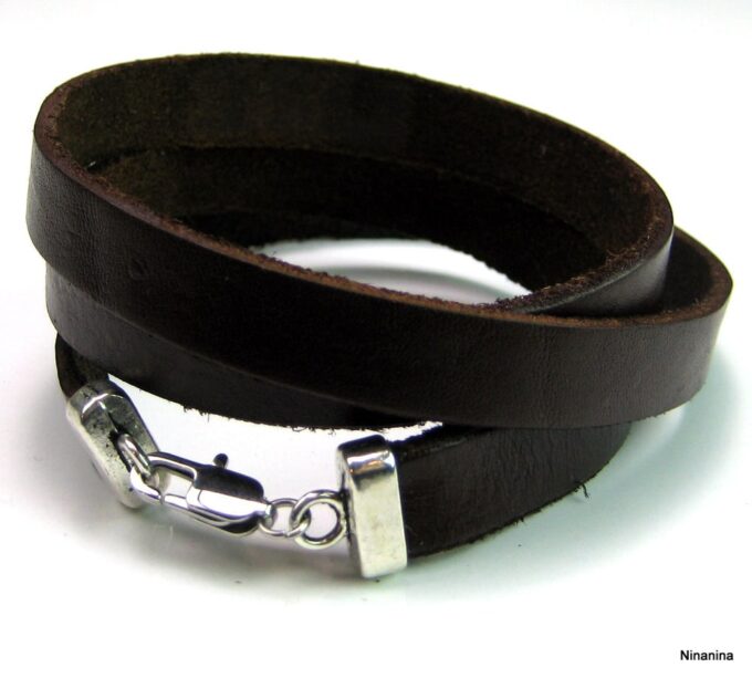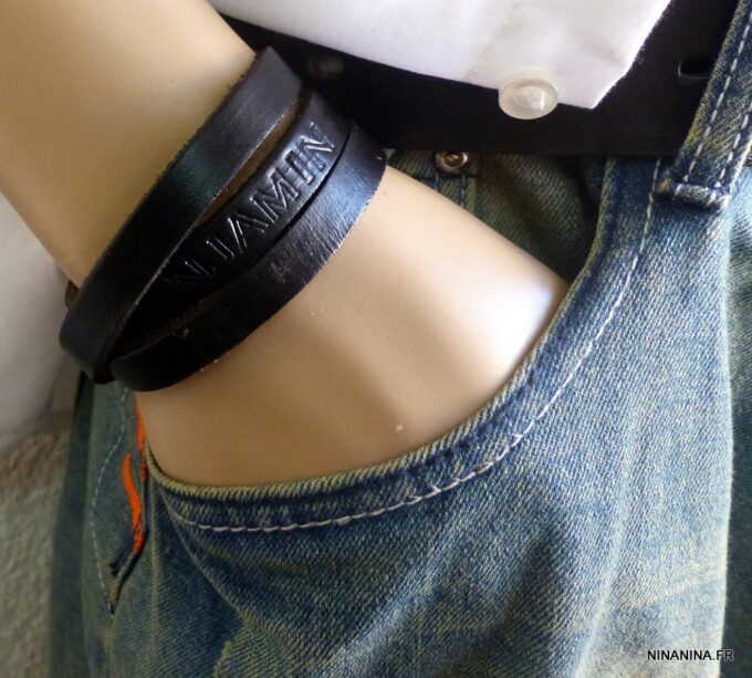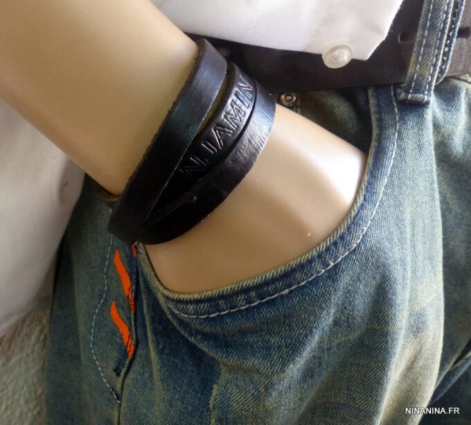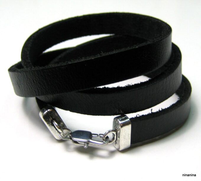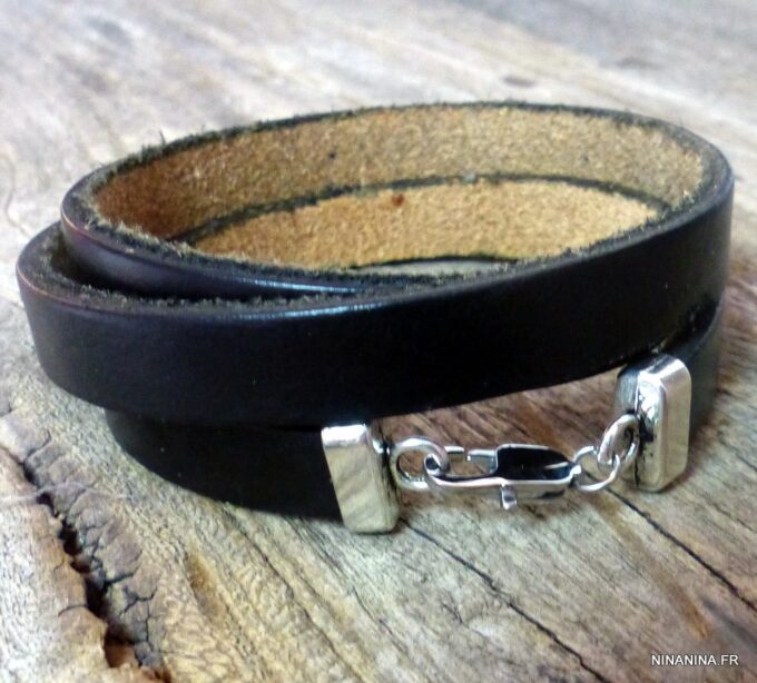 Bracelet homme cuir 3 tours personnalisé chiffres romains composé d’un bandeau de cuir noir (1 cm de large) à enrouler autour du poignet.   Fermoir mousqueton en métal argenté.