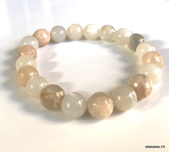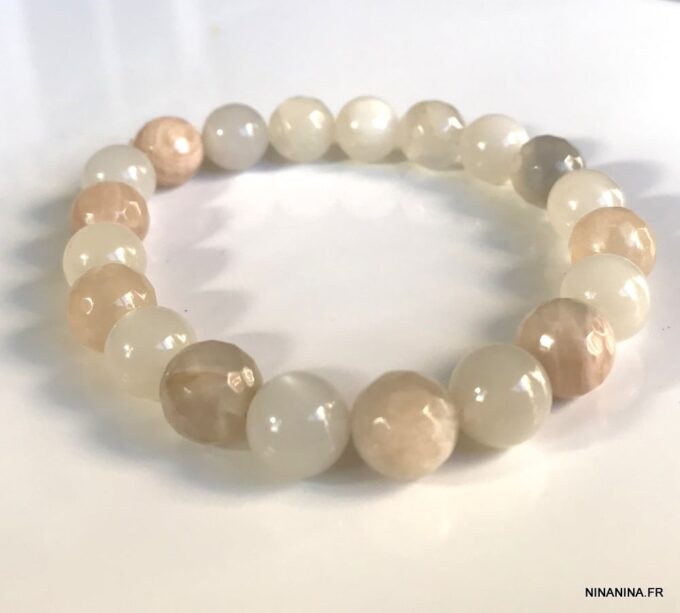 Bracelet pierre de lune rose blanc et gris perle 10mm
