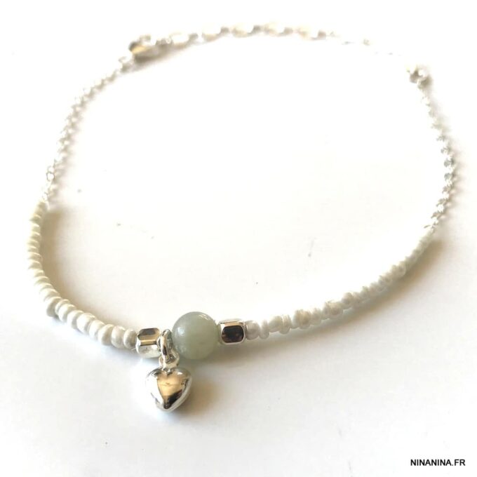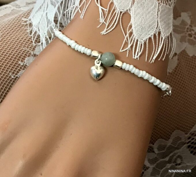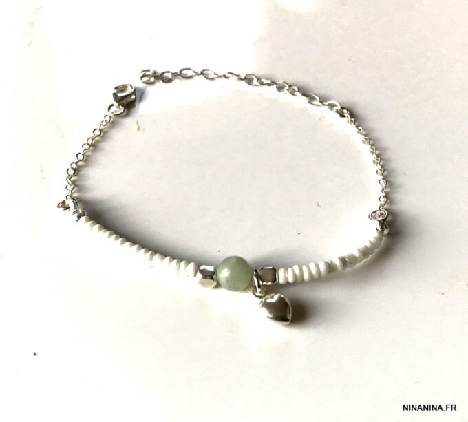 Optez pour ce joli Bracelet pierre de naissance Mars Aigue Marine Argent 925 constitué d’une perle ronde en Aigue Marine véritable, d’un petit coeur et de perles carrées en argent 925 et de perles de rocaille blanche montées sur une fine Chaine maille forçat en argent 925.