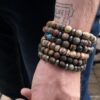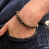 Ce Bracelet homme ultra tendance est fabriqué à la main avec des perles en pierre naturelle de grande qualité, de façon artisanale dans notre atelier en France. Diamètre des perles : 0,8 cm. Cette pièce faite sur mesure convient pour la majorité des poignets d’homme et de femme, la longueur proposée est de 19 cm. Merci toutefois de laisser un commentaire si vous désirez une autre longueur.
