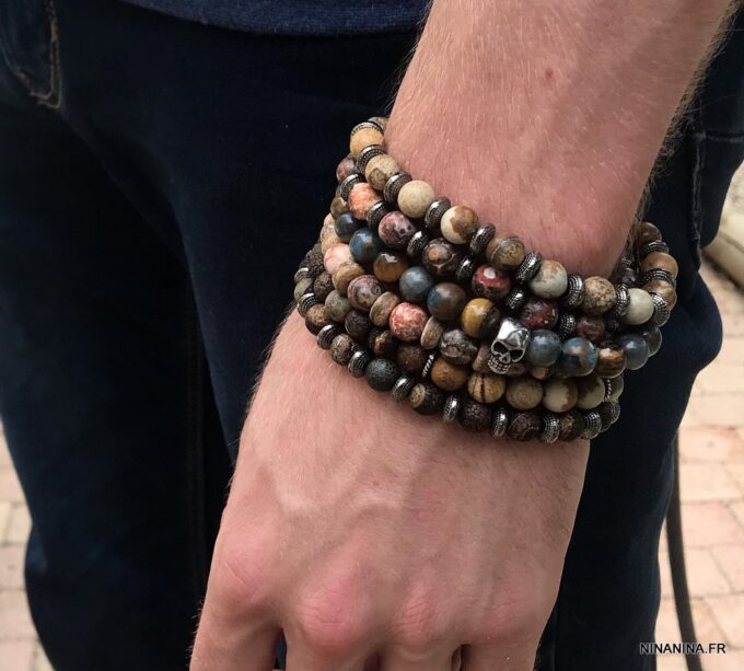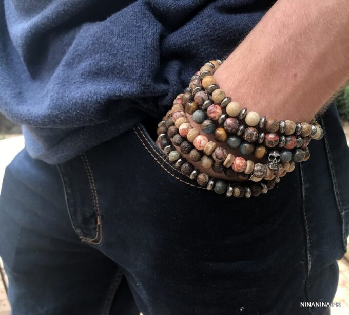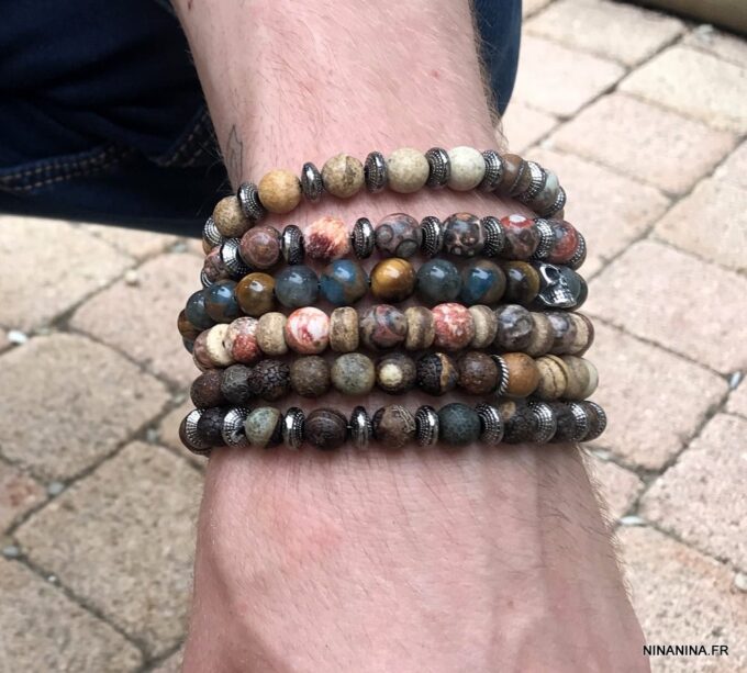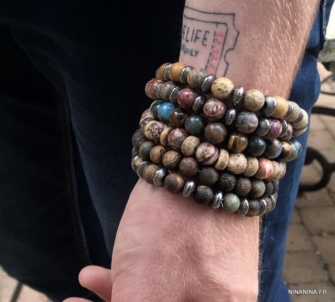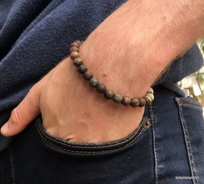 Agrémentez votre look d’une touche personnelle avec ce Bracelet pierre marron jaspe paysage et pierre naturelle.