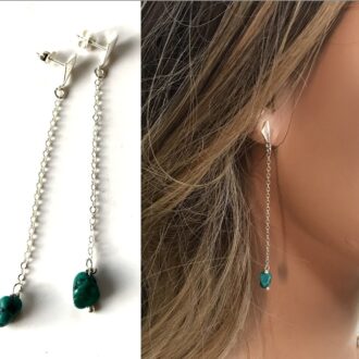 Trois pierres brutes en turquoise naturelle, quelques mailles d’argent pour le chic et la fantaisie, ce bracelet féminin possède tout ce que l’on peut attendre d’un bijou: du charme, de la fantaisie, et un caractère unique qui vous fera sentir si différente!
