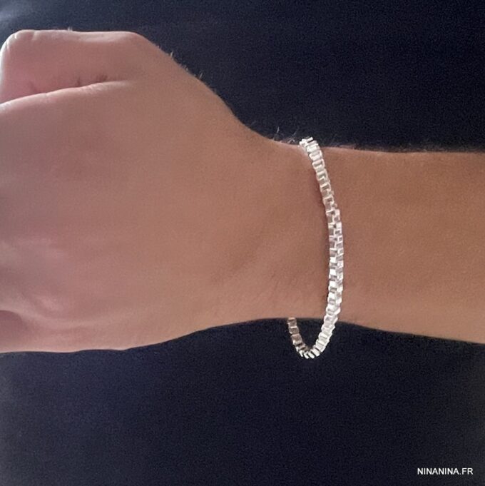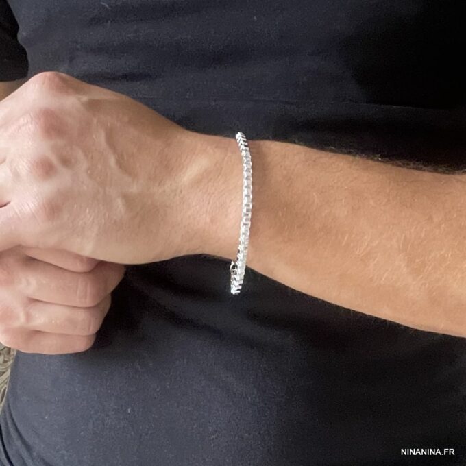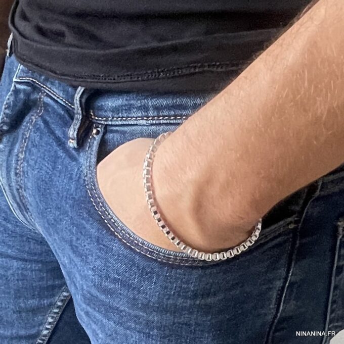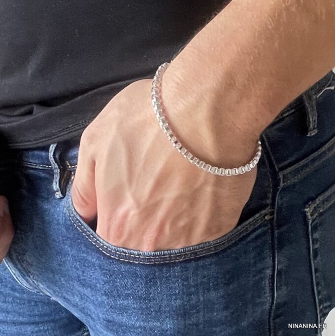 Un bracelet maille carrée qui convient pour la plupart des poignets d’hommes
