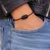 Ce bracelet astrologique pour homme associe sobriété, symbolique et caractère. Réalisé dans un esprit artisanal, il se compose d’un cordon en cuir noir souple et résistant, ajustable grâce à des nœuds coulissants, pour un confort optimal et une adaptation parfaite à tous les poignets.
