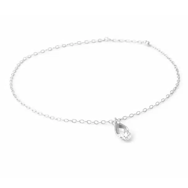 Bracelet femme artisanal – pendentif goutte à facettes en cristal de Swarovski sur fine chaine argent 925