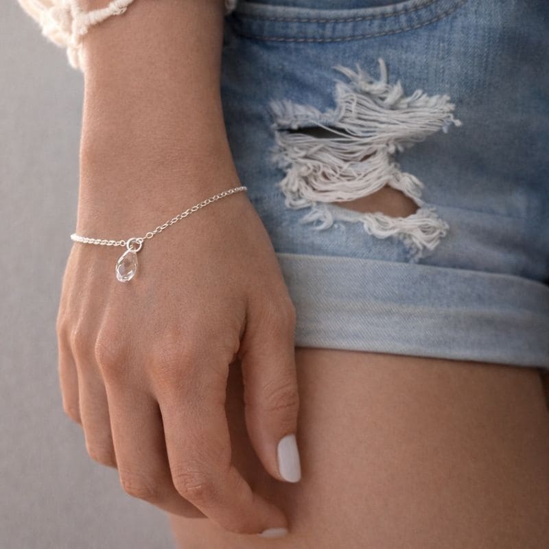 Soyez le premier à laisser votre avis sur “Bracelet femme artisanal – pendentif goutte à facettes en cristal de Swarovski sur fine chaine argent 925”
