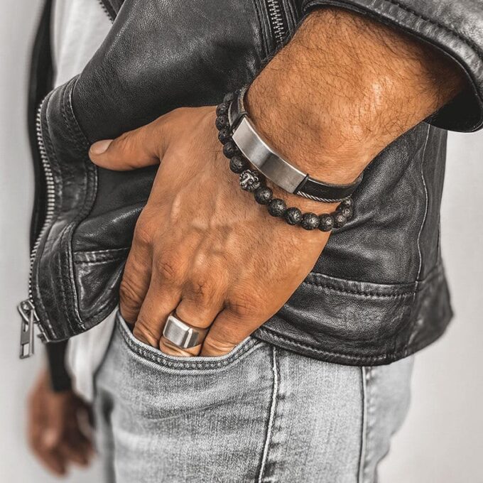 Que vous soyez plutôt casual chic, hipster ou un tantinet bad boy, le Bracelet pierre de lave est indéniablement l’accessoire ultime à avoir dans votre garde-robe. D’ailleurs, avec son allure décontractée, mais chic, il s’accommode à toutes les tenues et donnera du pep’s à tous vos looks. En outre, pour une allure affirmée et branchée, vous pouvez opter pour le combo parfait : un t-shirt manche courte ou 7/8 qui découvre vos poignets et un bracelet cordon homme. Effet garanti !