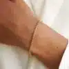 Ce bracelet se suffit à lui-même pour une allure épurée, mais peut aussi être superposé avec d’autres bracelets dorés pour un effet tendance et personnalisé.