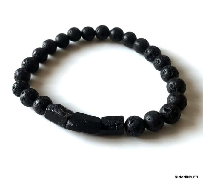 Superbe bracelet mixte à l’énergie minérale et au look incroyable, ce Bracelet Tourmaline noire brute et pierre de lave saura vous accompagner de toute sa classe! !