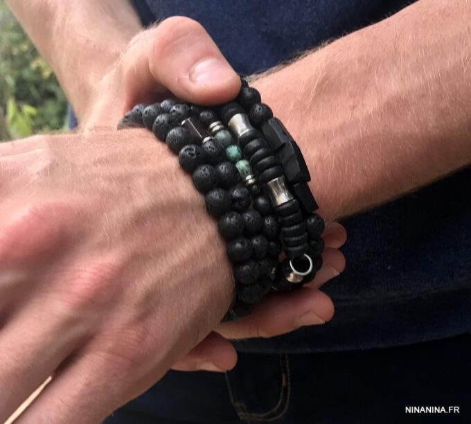 Ce bracelet pierre de lave dégage une classe sans pareille, irradiant au poignet sa puissance minérale et son élégance virile! Un bracelet à offrir à un homme adepte de bijoux en pierre fine, qui satisfera son envie de se démarquer. A porter seul ou mixé à d’autres Bracelets Ninanina pour un style qui vous sera propre !
