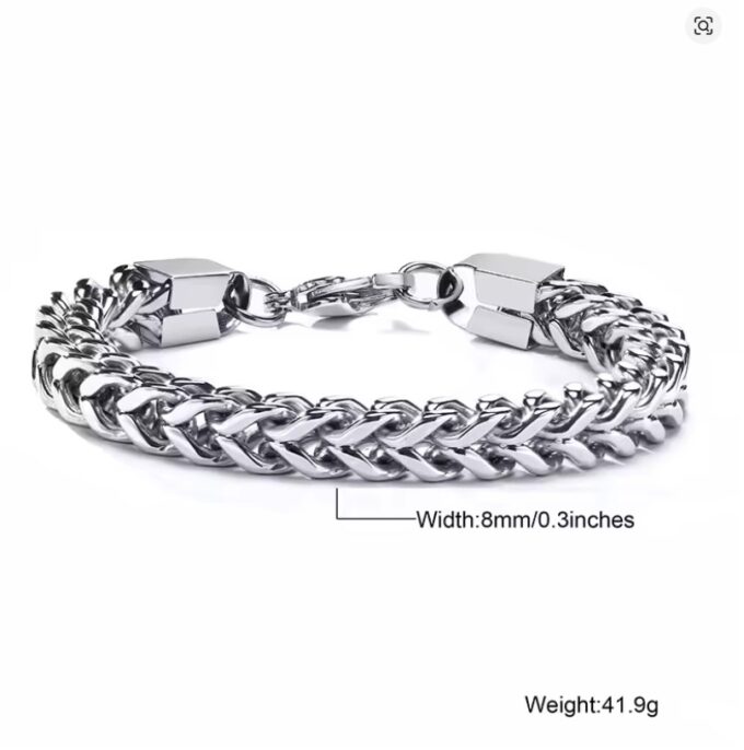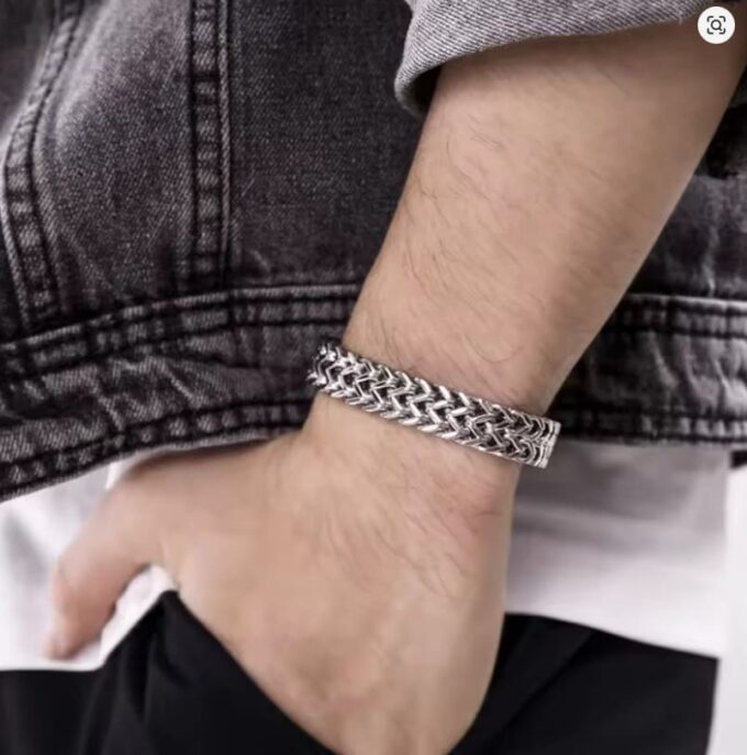 Ce bracelet tressé homme en maille double allie robustesse et élégance intemporelle. Conçu en acier inoxydable argenté, il résiste à l’eau, à l’oxydation et à l’usure quotidienne, tout en conservant son éclat.