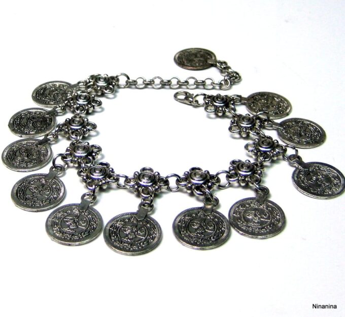 Soyez le premier à laisser votre avis sur “Bracelet tribal pièces métal argenté”