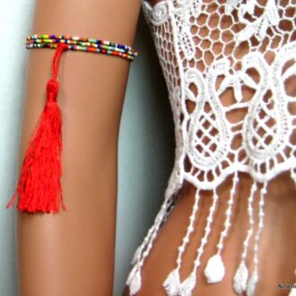 Soyez le premier à laisser votre avis sur “Bracelet wrap perles multicolores pompon rouge”