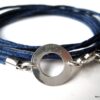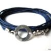 Bracelet wrap cuir anneau Argent 925 massif