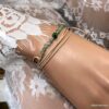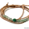 Ce bracelet pierre verte en cuir naturel beige clair allie authenticité et raffinement.